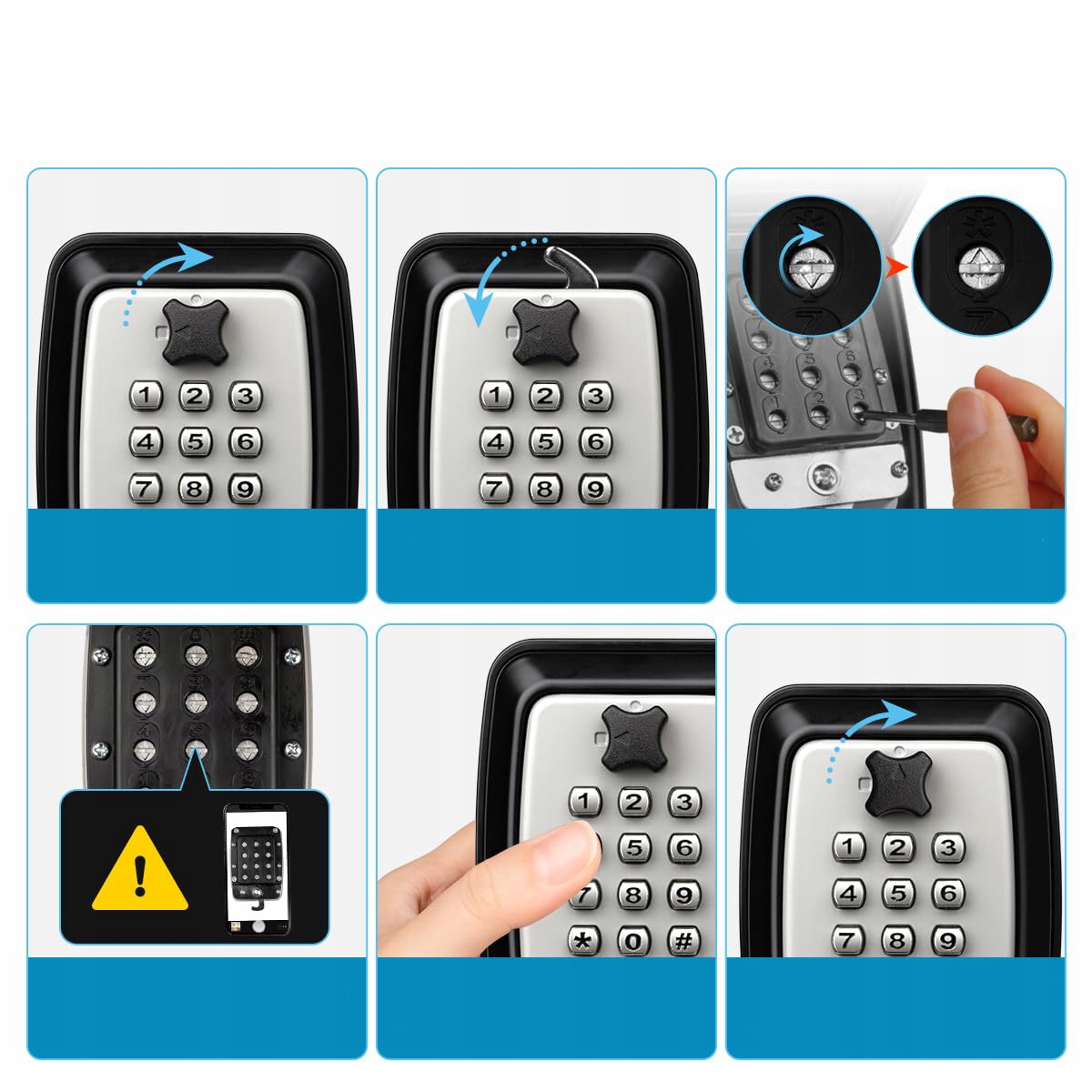 ВИСОКА БЕЗПЕКА】: наша скринька з ключами оснащена 12-значним паролем із тисячами комбінацій, що робить його важчим для злому та більш безпечним. Пароль можна скинути. (‼Примітка: після встановлення нового пароля, будь ласка, сфотографуйте або зробіть нотатку. Якщо ви забудете пароль, він стане непридатним для використання.)