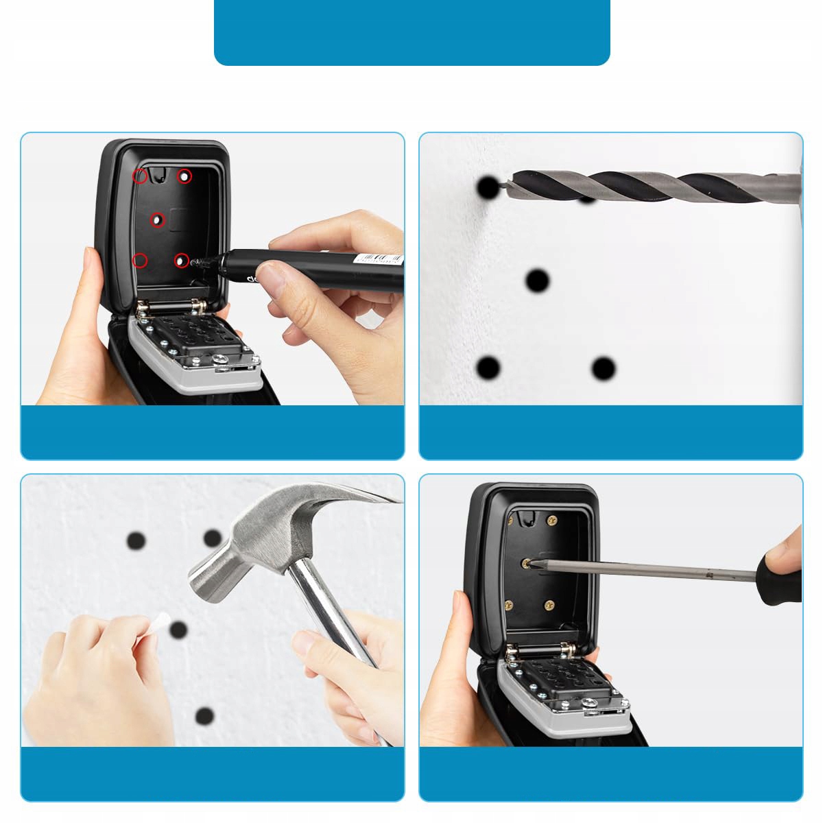 ✅【ЛЕГКО ВСТАНОВЛЕННЯ ТА КОРИСТУВАННЯ】: ящик для ключів постачається з 4 гвинтами та 4 подовжувачами, його легко встановити та закріпити на стіні; За допомогою невеликої викрутки ви можете зручно встановити пароль, металева ручка зручніша у використанні, а цифри зрозуміліші, навіть люди похилого віку можуть легко користуватися нею.