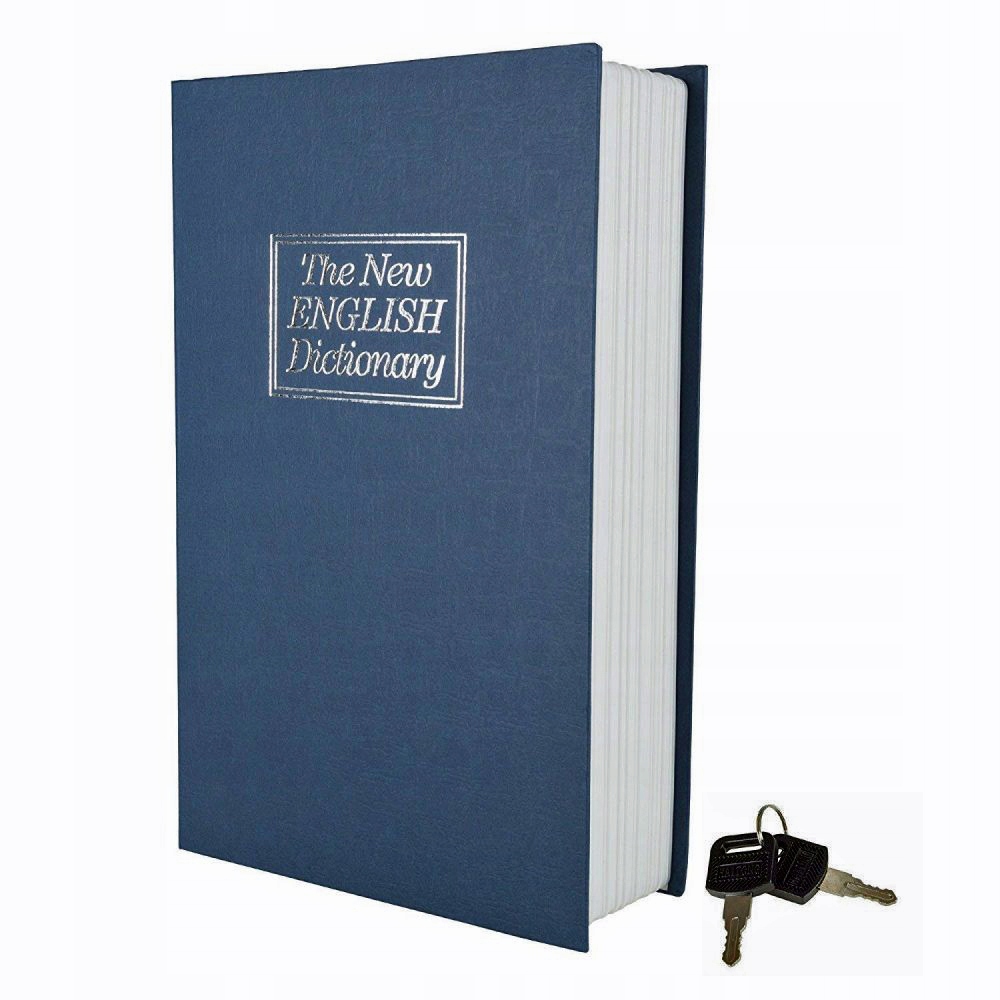 ► Коробка захована під картонною обкладинкою, яка виглядає як книга (англійський словник) . Сама коробка виготовлена з високоякісного сталевого листа та має патентований замок із 2 ключами в комплекті.