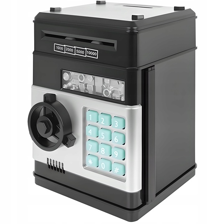Скринька у вигляді сейфа - цікава альтернатива традиційним, всім відомим скарбничкам. Сучасний вигляд і додаткове збагачення світловими і звуковими ефектами. це, безумовно, приверне увагу багатьох дітей і спонукатиме їх заощаджувати змалечку. Ця скарбничка — найкраще місце для ваших грошей. Встановіть код і більше не турбуйтеся про свої заощадження.