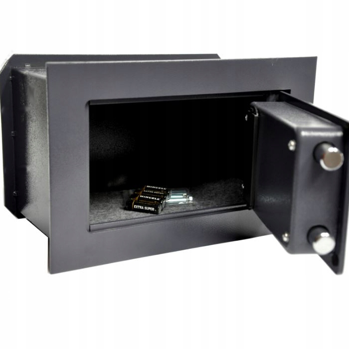 - Сейф настінний для вбудовування оснащений електронним та механічним (на ключ) замком. Додатково в сейфі є аварійний замок (2 ключа для екстреного відкривання).