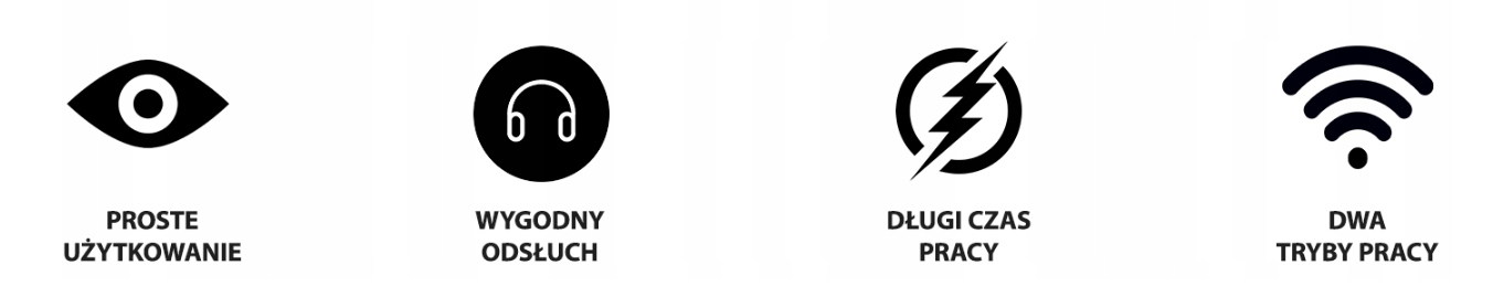 Ресурс роботи пристрою від батареї становить приблизно 40 годин. Приладдуже простийу використанні. Посібник польською мовою надається в цифровій формі.