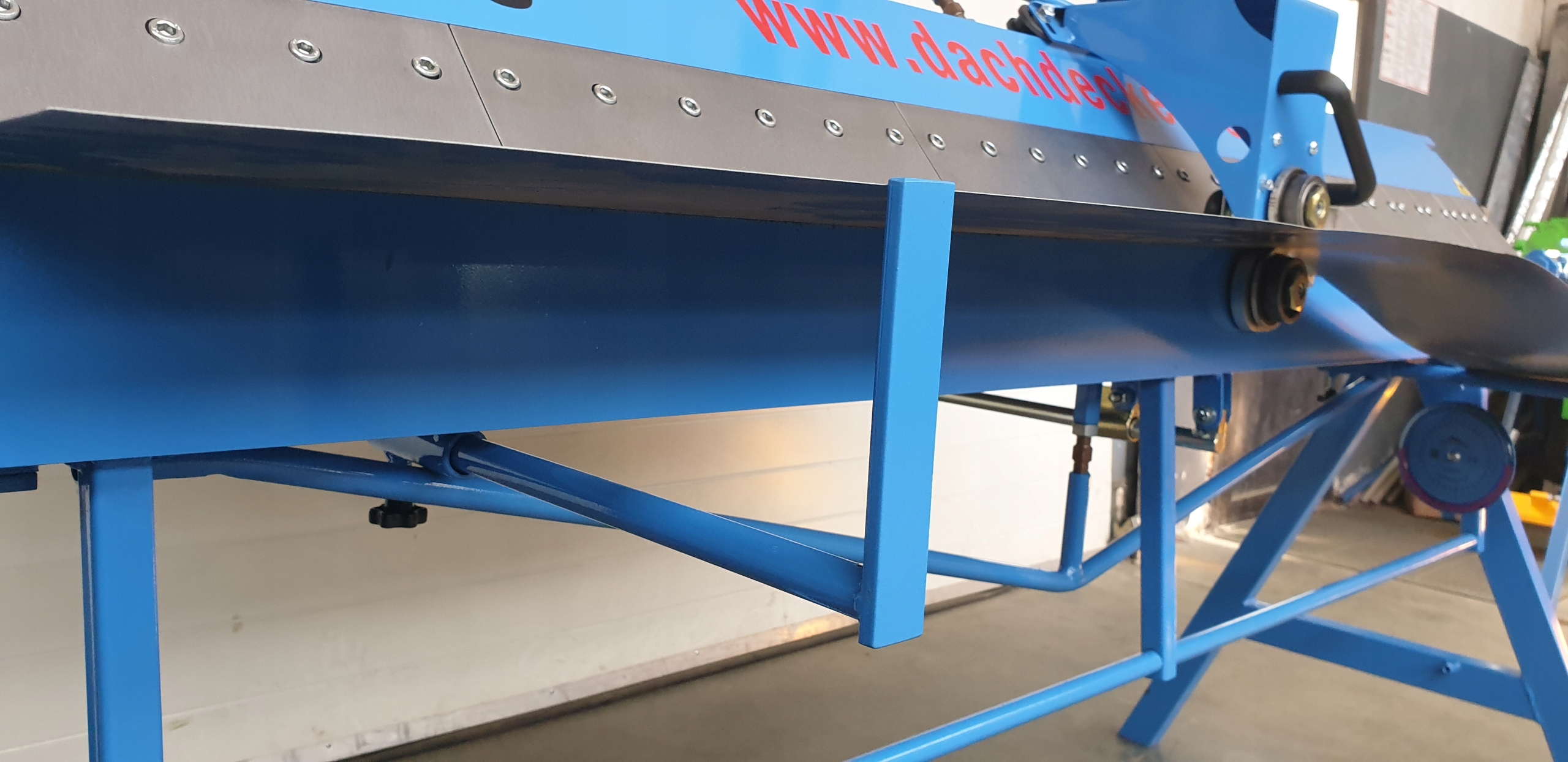 -задній таблиця, оснащений опором (1000 мм) -(додаткове обладнання) - дозволяє розташувати аркуш і вільний рух. Його можна використовувати як місце для розміщення аркушів. Оснащений за шкалою, яка дозволяє точно встановити зігнутий і нарізаний листовий метал.