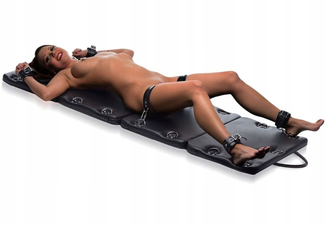 Еротичний матрац з екологічної шкіри призначений для БДСМ-бондажу та позиціонування тіла в різноманітних секс-позиціях Камасутри. Сталеві кільця з боків матраца дозволяють встановити наручники, джгути та бондажні мотузки, дозволяючи займатися безглуздим, грубим сексом з поділом на домінуючу і покірну сторону або з елементами садо-мазо. Складається на 4 частини, її зручно зберігати в шафі або під ліжком. Матрац можна розділити на дві половини завдяки швидкому замку, розташованому в центрі гаджета. Ергономічні ручки для перенесення полегшують транспортування та використання. Матрац виготовлений з дерев'яної конструкції та покритий м'яким поролоном, що робить його комфортним та стійким.