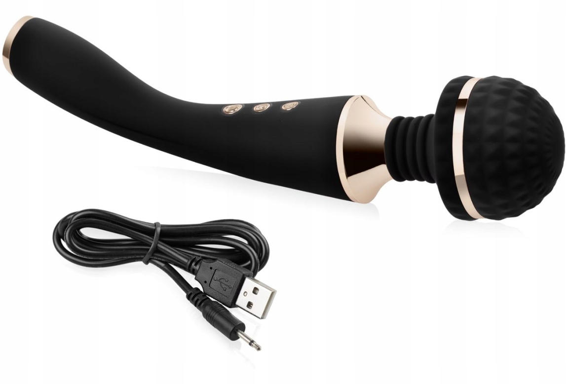 Бездротовий еротичний масажер у стилі Magic Wand, призначений для стимуляції клітора та пестощів зовнішніх ерогенних точок всього тіла. Масажер надзвичайно сучасного дизайну, виготовлений з матеріалів найкращої якості. Виріб повністю виготовлено з медичного силікону - гігієнічного та гіпоалергенного матеріалу. Елементи з ABS-пластику золотого кольору надають йому розкішного вигляду. Масажер характеризується надзвичайно інтенсивною та ефективною роботою, яку можна порівняти з продуктами, що живляться від розетки. Потужний вібромотор має 10 функцій вібрації та пульсації та 5 рівнів інтенсивності, що дає аж 50 варіантів для оргазмічних ласк. Тож ви зможете успішно налаштувати дію під свої потреби, досягнувши максимального задоволення. Крім того, головка масажера покрита регулярними виступами, які значно посилюють стимуляцію, забезпечуючи більш інтенсивний досвід. Щоб забезпечити вам неймовірно приємну стимуляцію та чудові ласки, масажна головка додатково нагрівається до 42 градусів за Цельсієм, і приємне тепло розпалить ваше бажання по максимуму.
