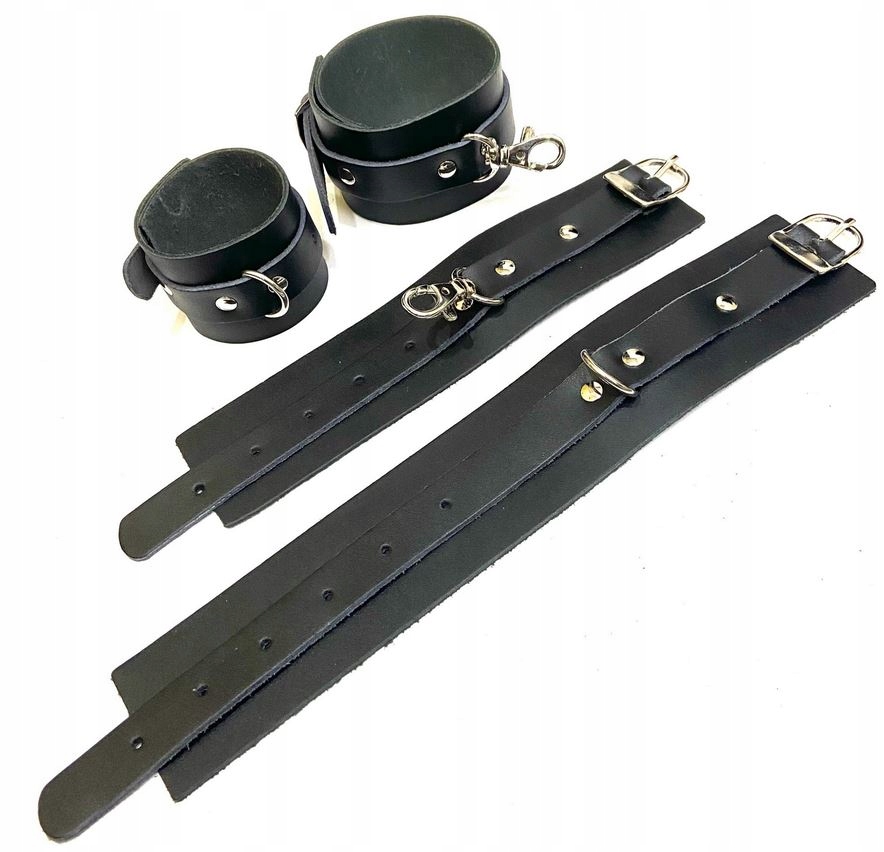 - регульовані манжети на щиколотках з металевим ланцюжком на карабінах; загальна довжина: 30 см, матеріал: екологічна шкіра з м'яким хутром всередині