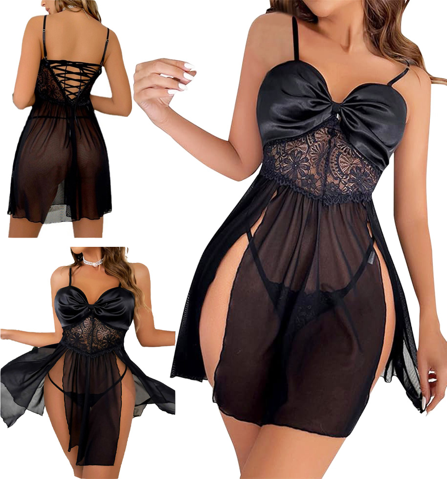 СЕКСУАЛЬНА АТЛАСНА ЖІНОЧА ПІЖАМА Футболка Нижня білизна ПІЖАМА МЕРЕЖИВО ТА РІЧ