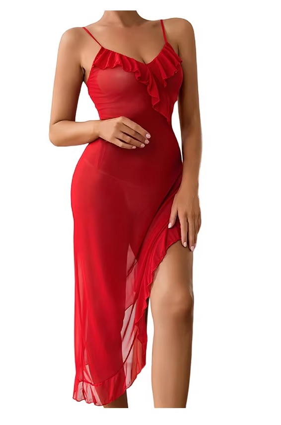 Сексуальна червона довга сітка ніч t -сорочка Дня Святого Валентина L/XL