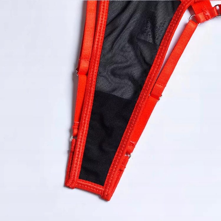 елегантний і сміливий набір нижньої білизни, який вражає унікальним стилем та ретельним завершенням . Глибокі відтінки червоного та чорного кольору утворюють чуттєвий контраст, ідеально підходить для людей, які шукають щось особливе.