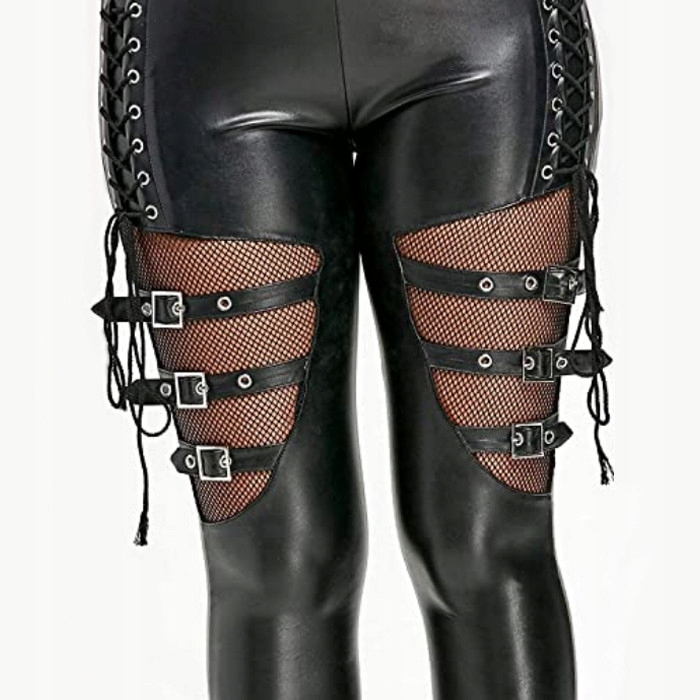 матові, екстравагантні, сексуальні чорні легінси з декоративною шнурівкою, регульованими лямками та сіткою