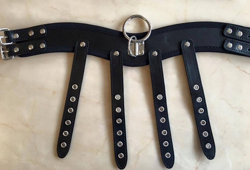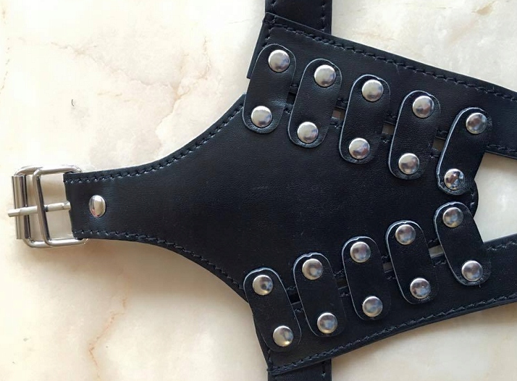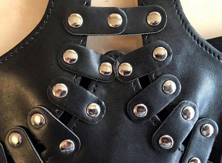 Все скріплене товстими ремінцями з пряжками та прикрашене заклепками.