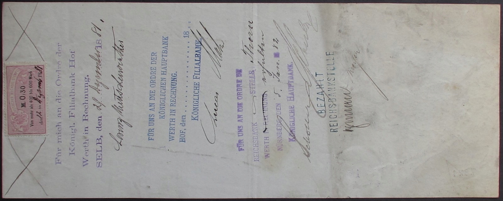 SELB BAYERN BAVARIA THORN TORUŃ WEKSEL 1881 HUTSCHENREUTHER
