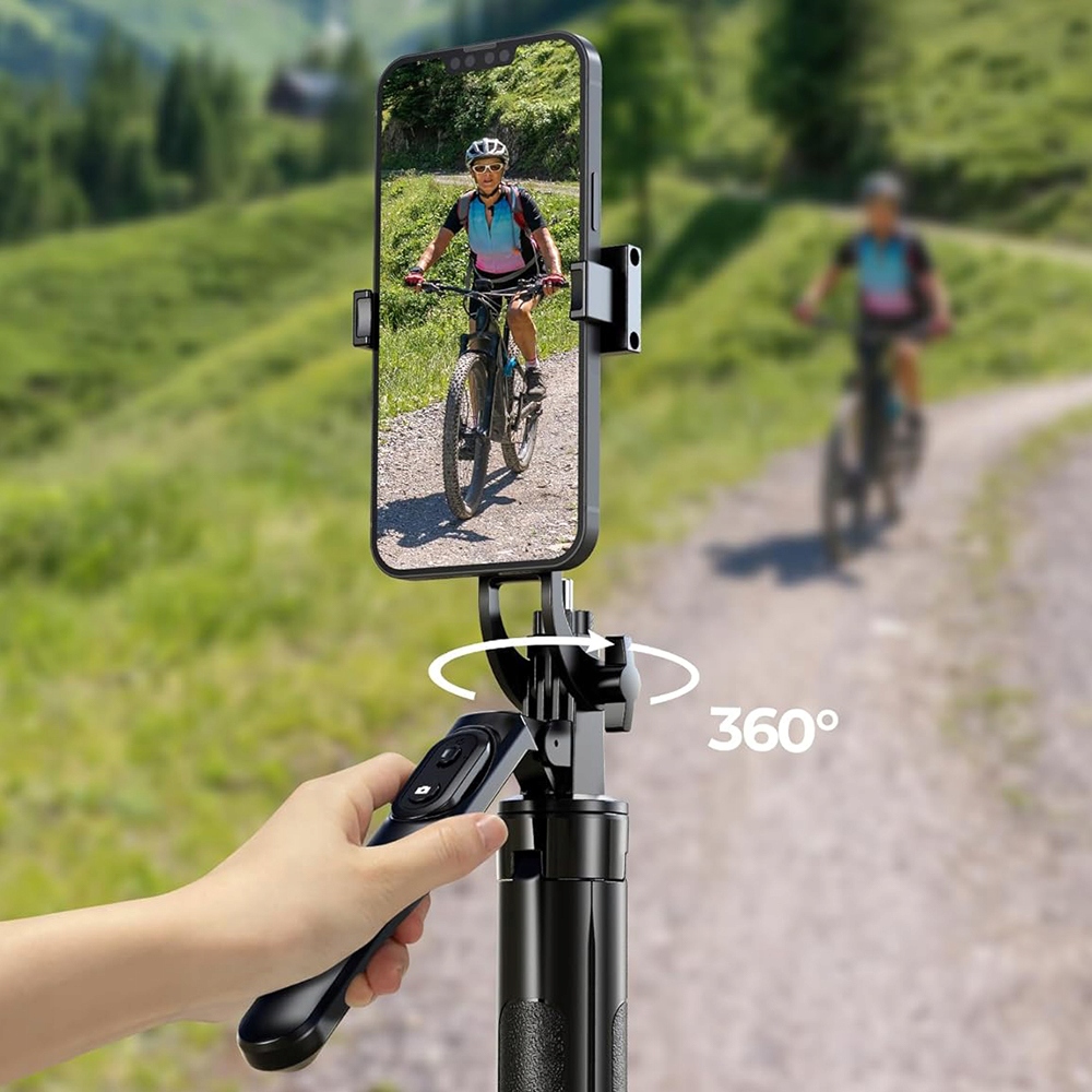 Телефонний штатив можна повертати на 360 градусів і нахиляти на 240 градусів, надаючи творцям відео більше гнучкості та простору для зйомки. Він ідеально підходить для тих, кому потрібен портативний штатив або підставка для телефону для запису чи прямої трансляції, що дозволяє зручно регулювати кут зйомки.