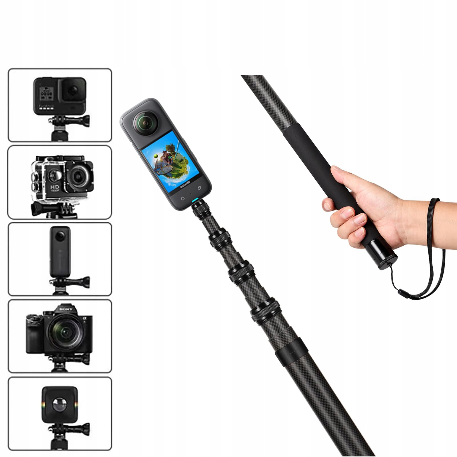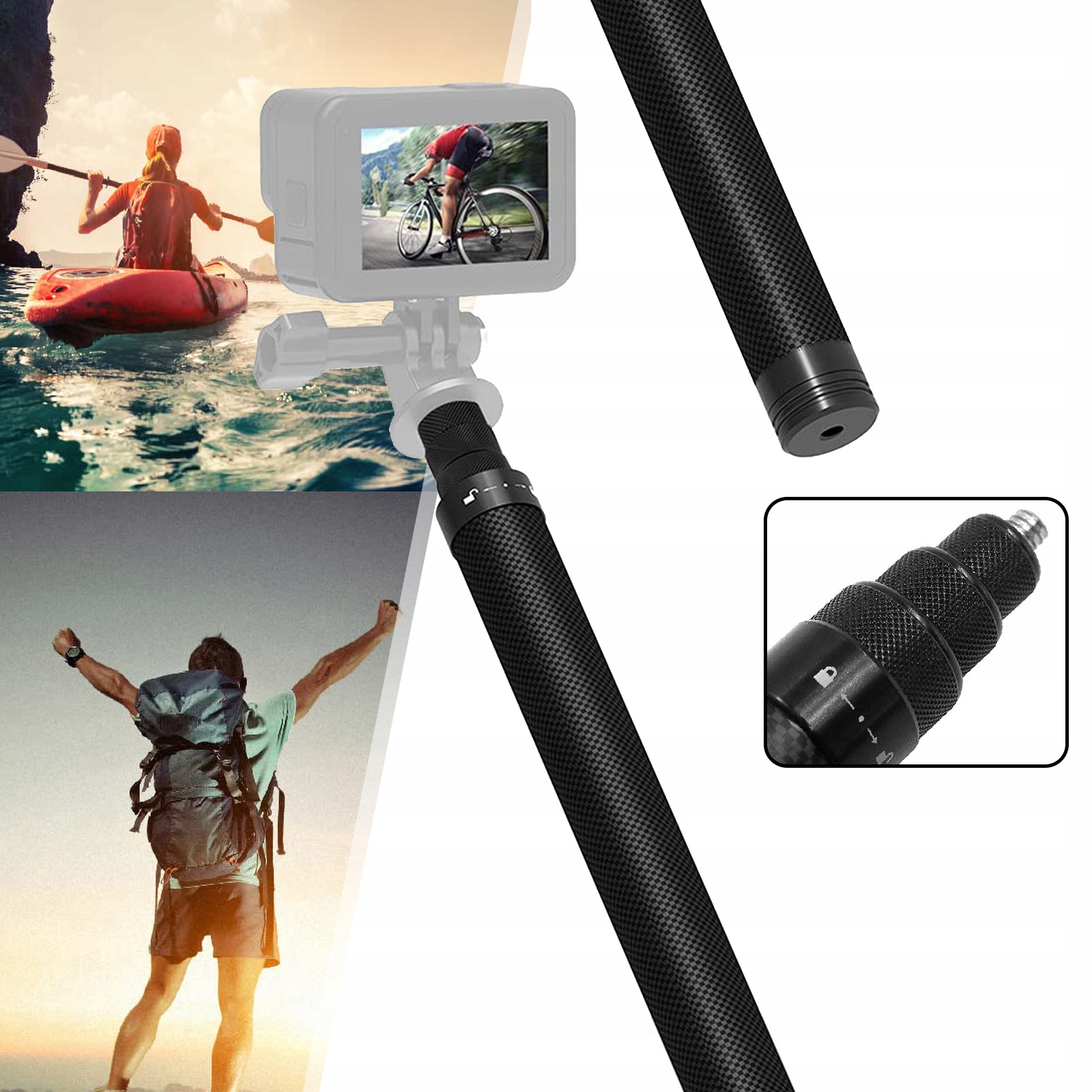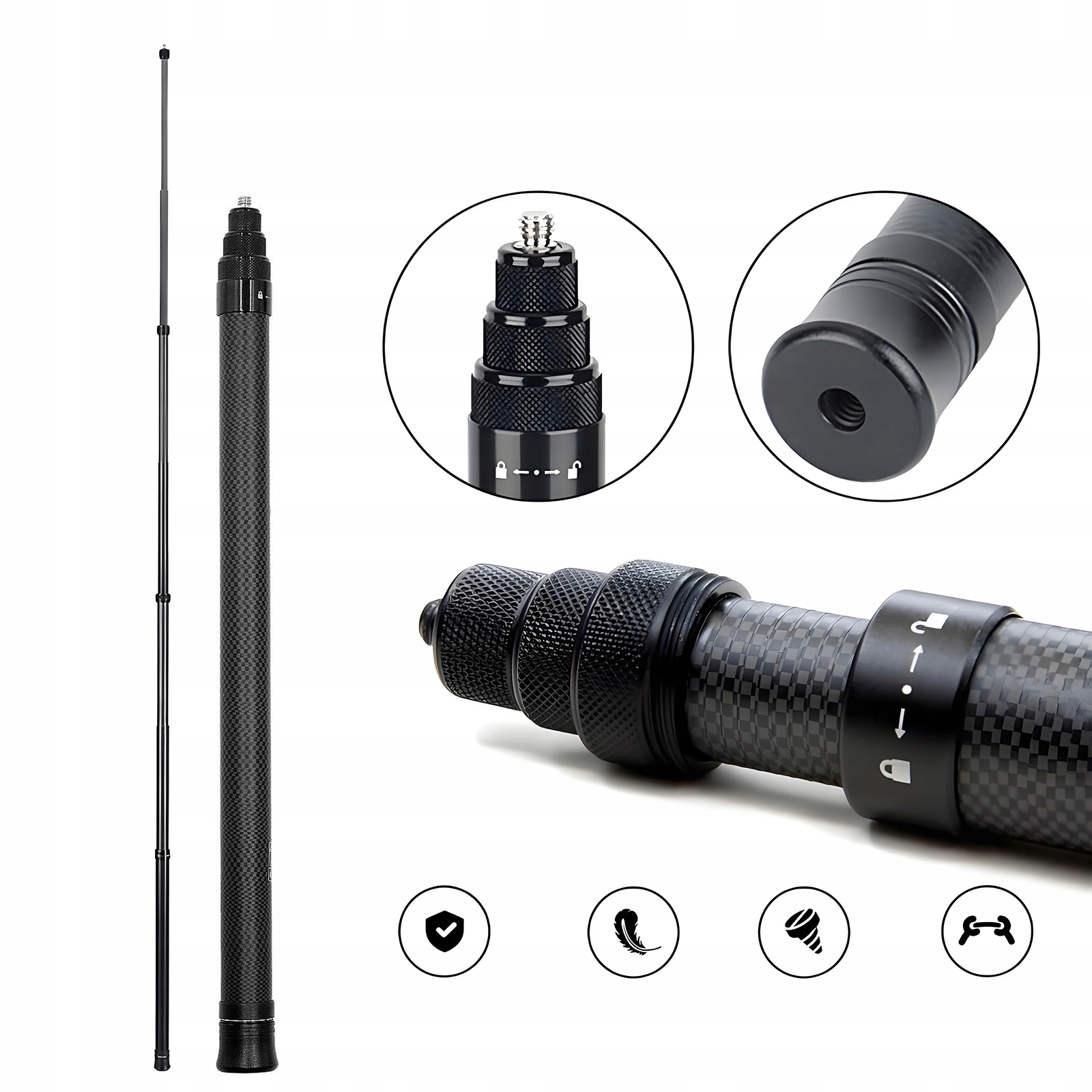 [Палиця для селфі з вуглецевого волокна] Високоякісна конструкція з вуглецевого волокна, міцна та міцна; характеризується виразними лініями, стильним і привабливим зовнішнім виглядом.