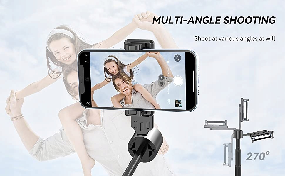ШИРОКА СУМІСНІСТЬ.Висувний штатив для телефону дає змогу знімати з різних кутів, щоб підходити до різноманітних пристроїв.