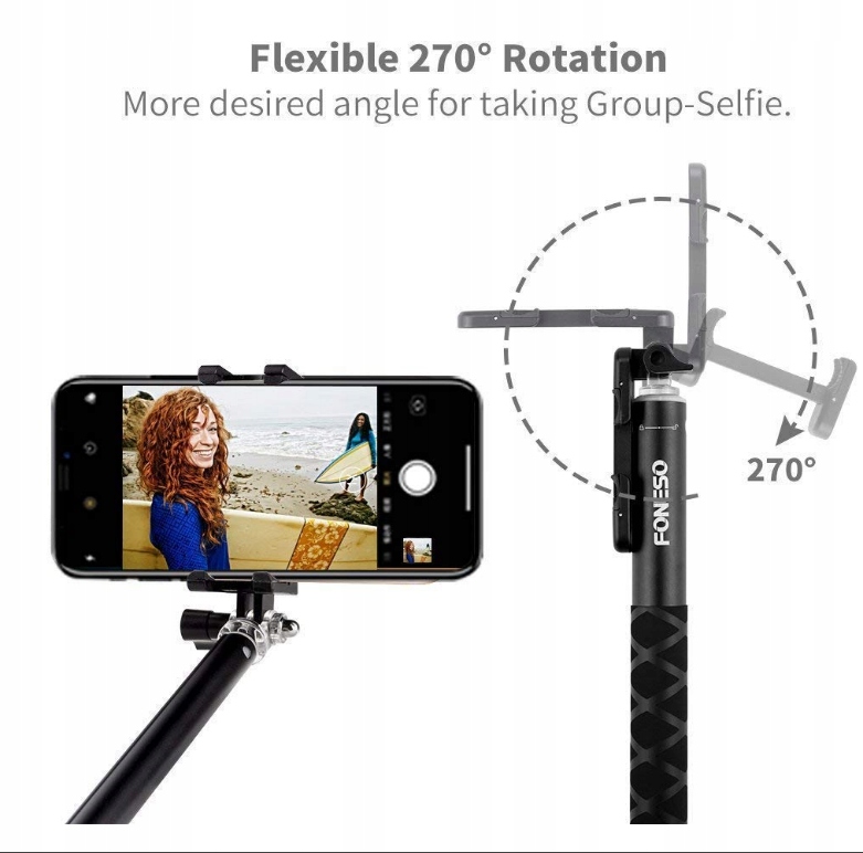 - Розширюється до 81 см. Ви можете повернути свій смартфон на 270 градусів, щоб забезпечити найкращий кут для фотографування.