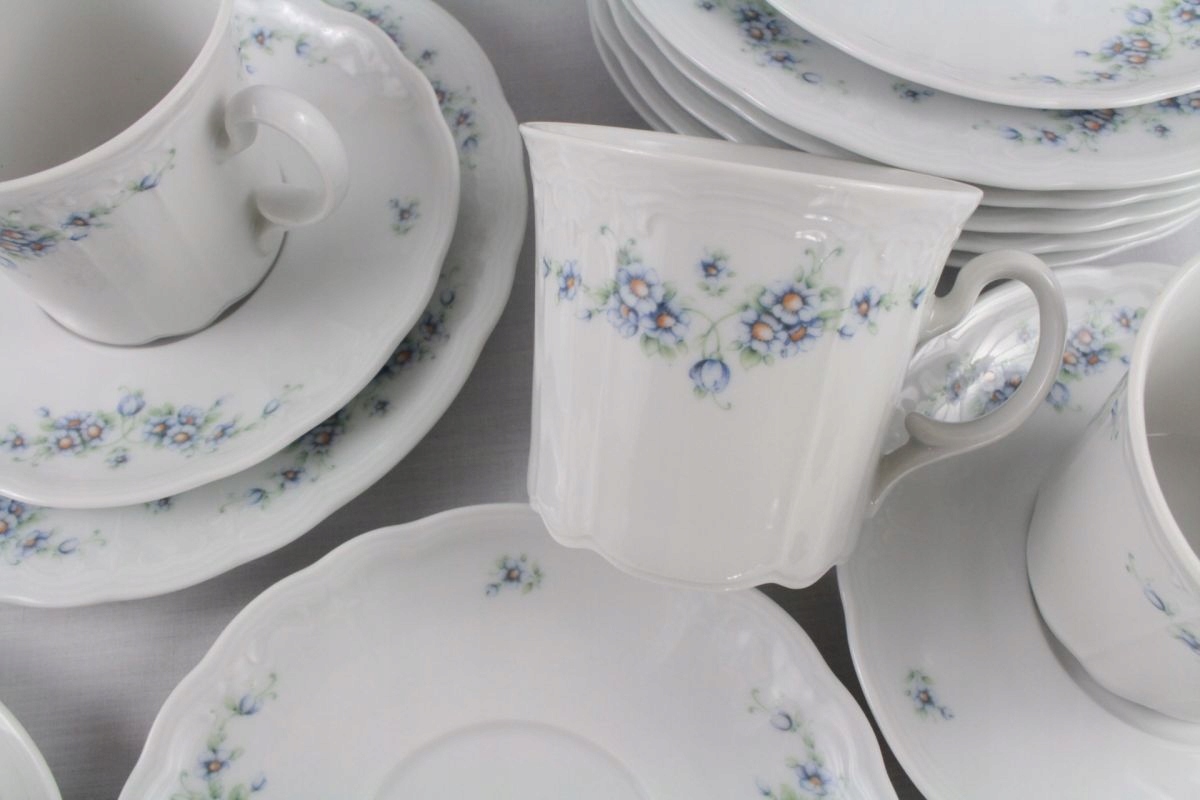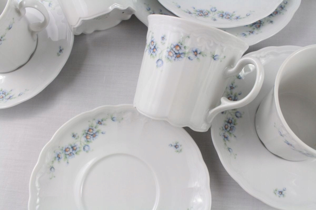 Біла порцеляна, ніжне тиснення та блакитні квіти