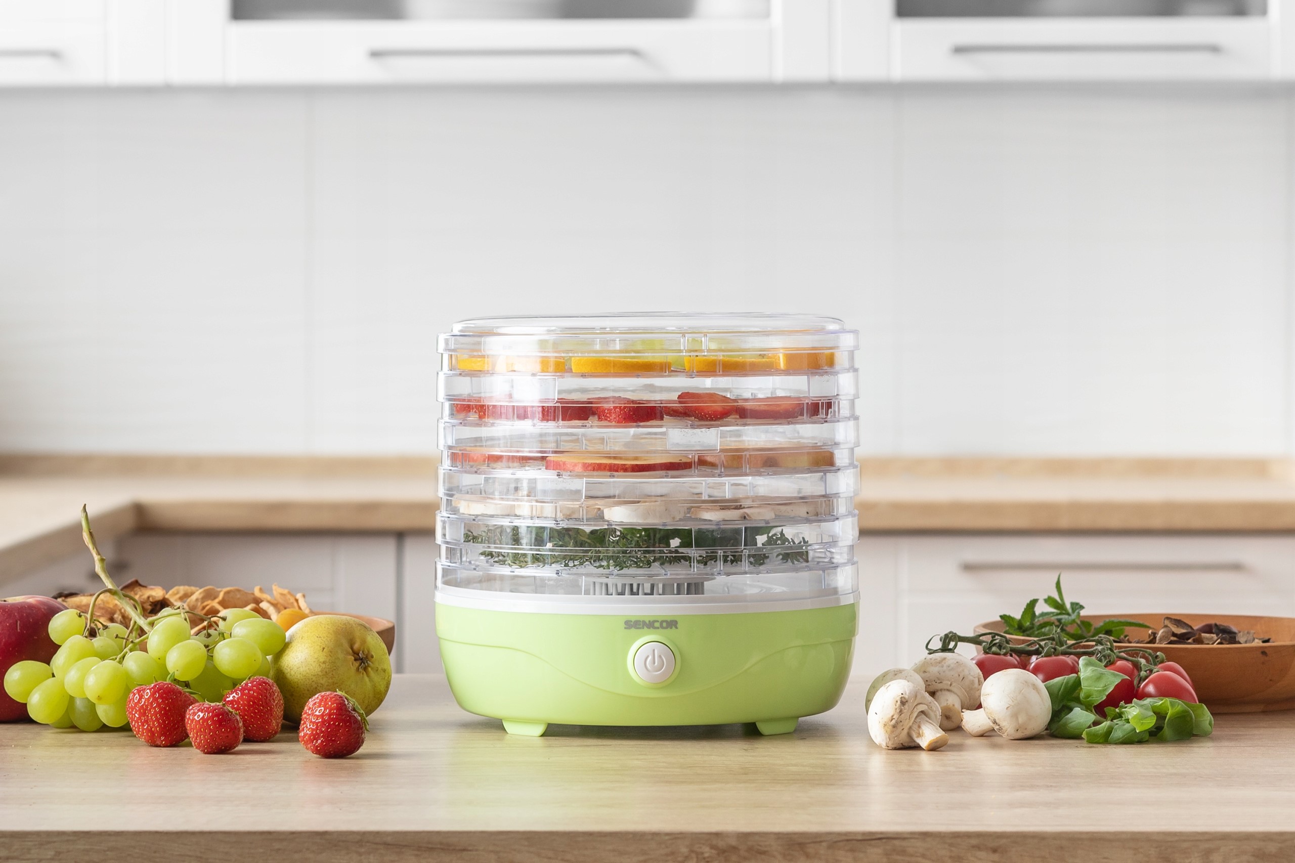 У вас під рукою свіжі фрукти, трави або гриби? Зберігайте їх на багато місяців завдяки сушарці харчових продуктів Sencor SFD 757GG. Його також можна використовувати для м'яса, риби чи овочів. Він оснащений 5 TAC, які забезпечують навіть висихання на всіх рівнях. Висушіть усі інгредієнти здорові, без консервантів та барвників, і обробляють висушені шматочки набагато краще, ніж з магазину. Для цього, звичайно, вітаміни та клітковини, які не вмирають у процесі сушіння.