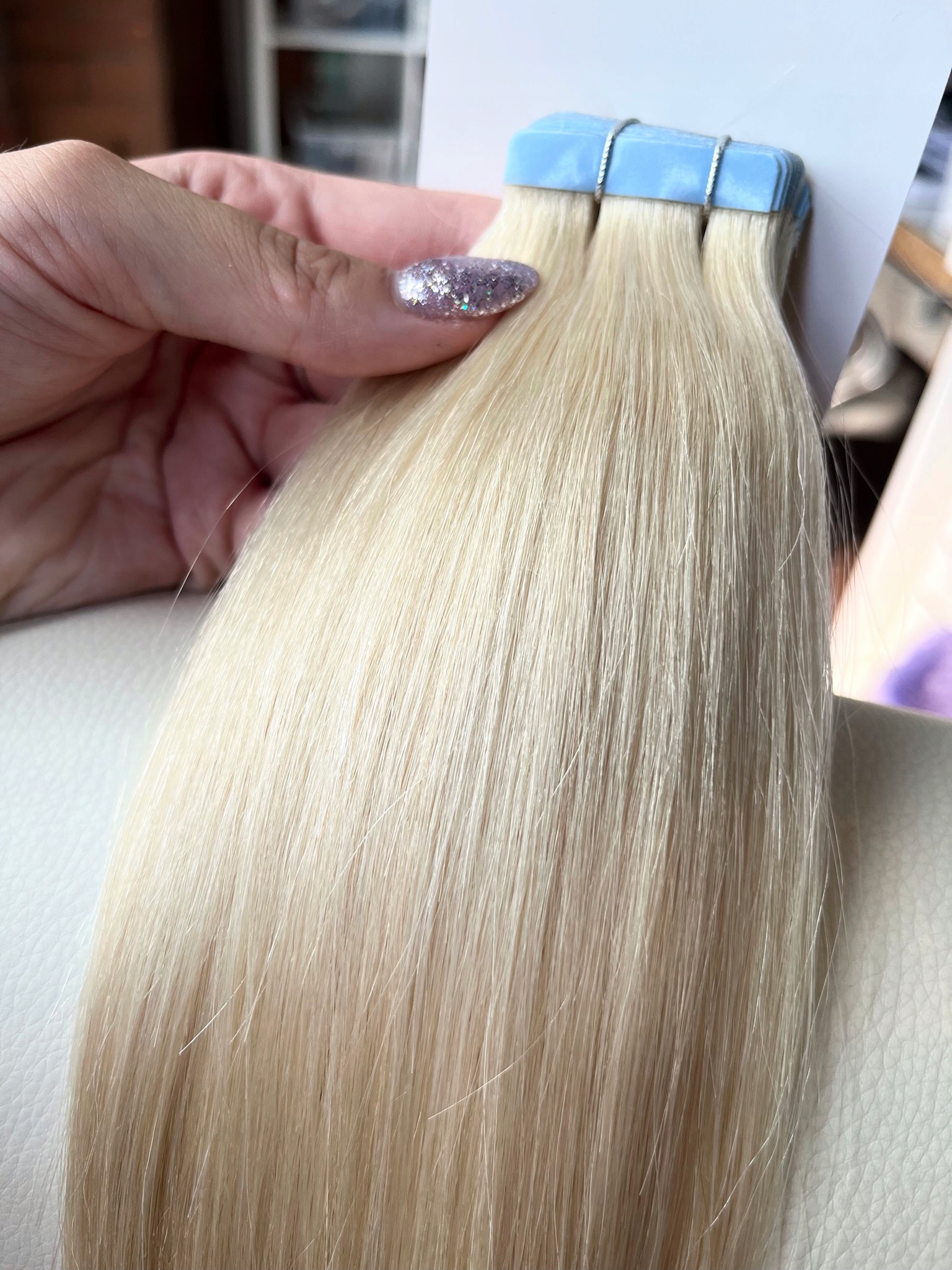 * Після наклеювання стрічок не мийте голову 4 дні, це зміцнить зчеплення, що подовжить час носіння волосся.