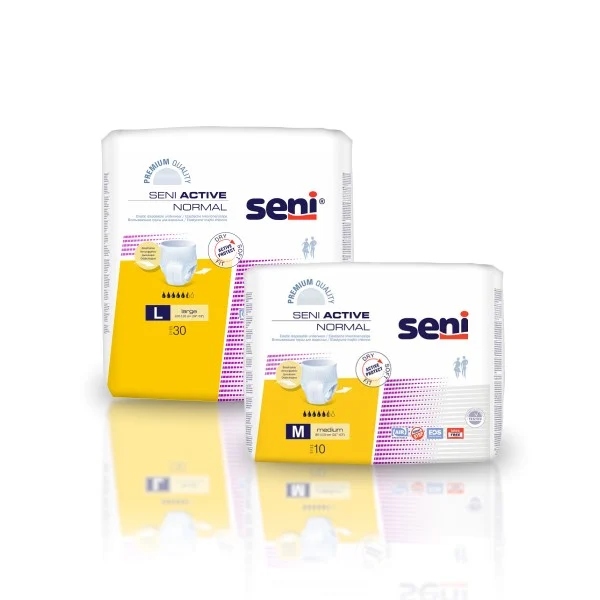 Вбираючі трусики Seni Active Normal — гнучкі одноразові вироби, призначені для людей, які ведуть активний спосіб життя, а також для учасників занять з фізичної реабілітації.