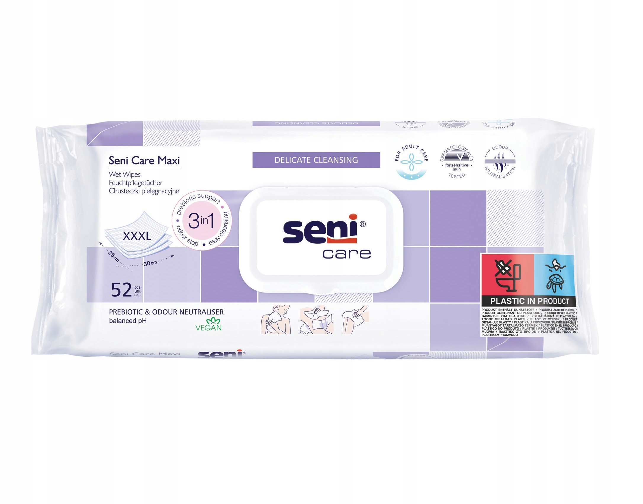 Серветки Seni Care Maxi 3in1 очищають ніжну шкіру та заспокоюють подразнення. Вони дозволяють легко підтримувати гігієну протягом дня.