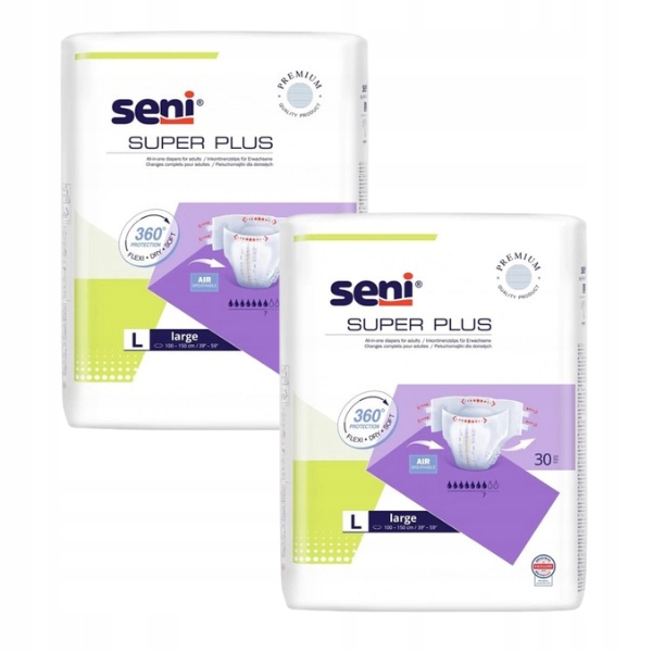 Seni Super Plus are breathable "night" diaper "with an elevated absorption level intended for both active people and for those with limited mobility with severe urinary incontinence. They can also be used in the case of fecal inconna rear part of the diaper of panties,