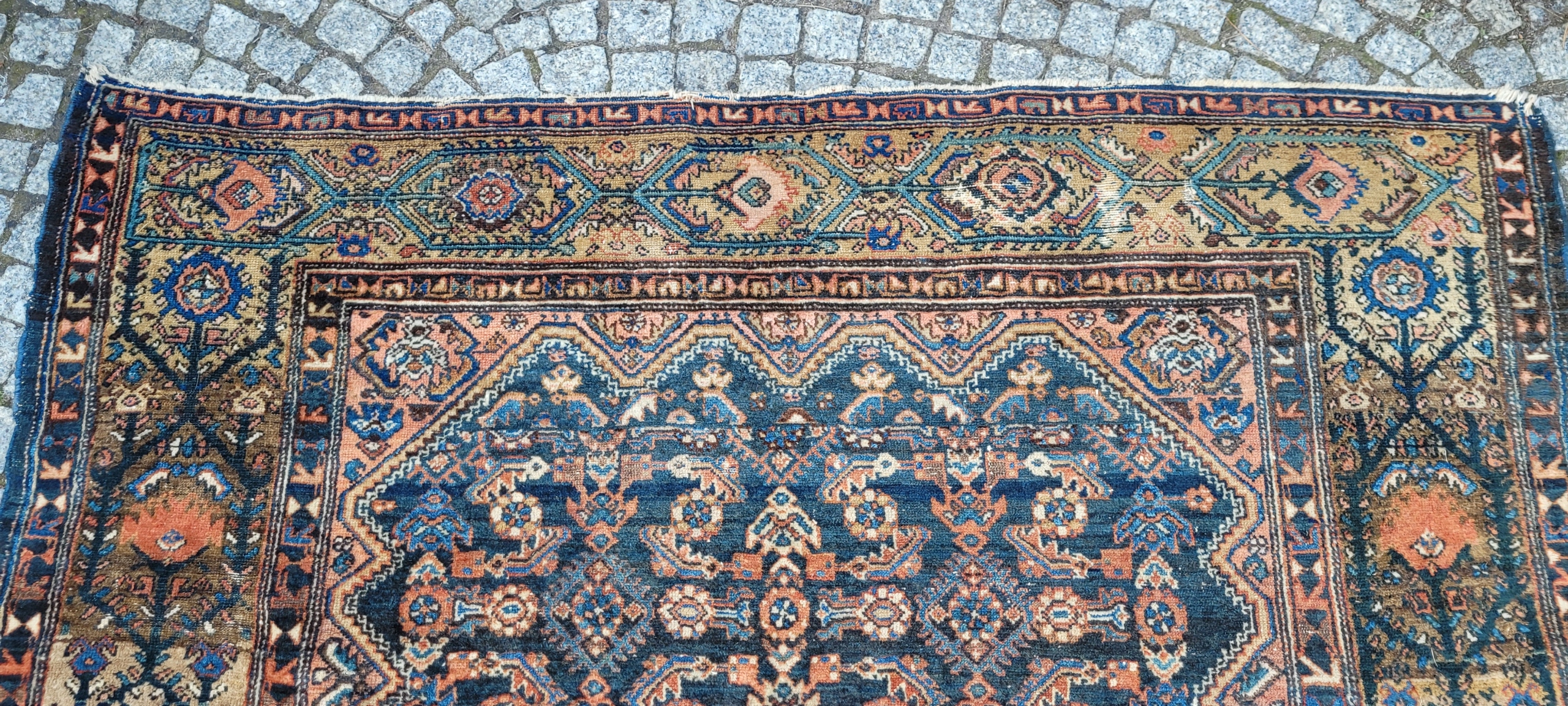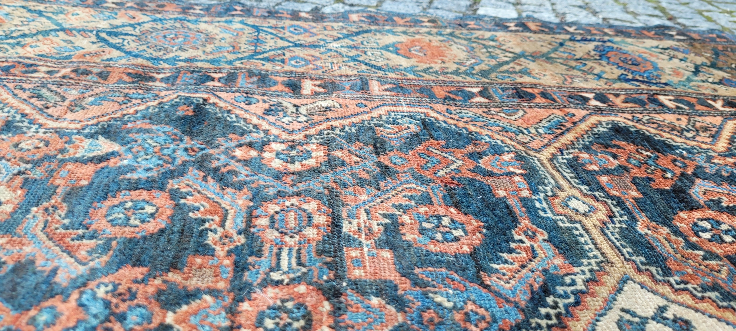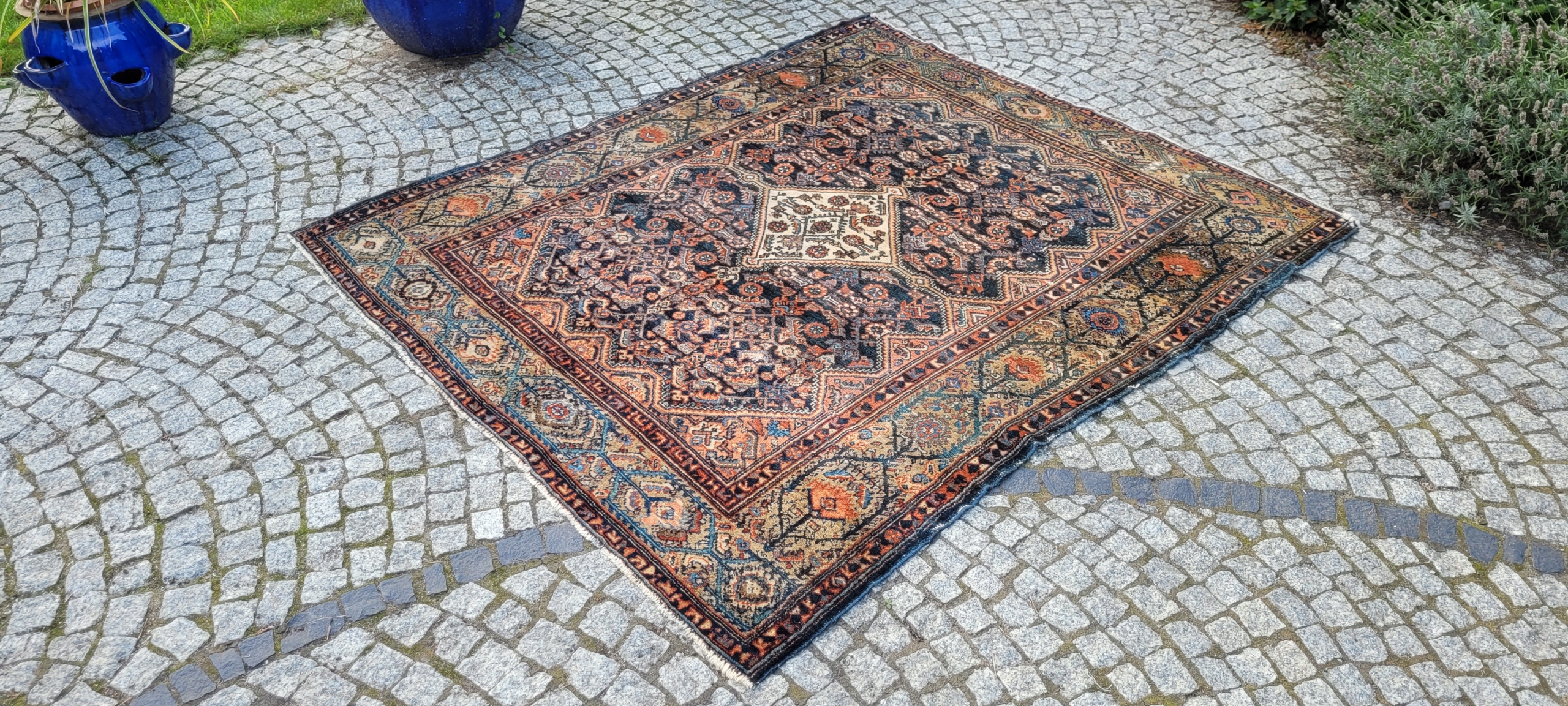 Перський старовинний килим Senneh. Виткана вручну з вовни найвищої якості. Характеризується компактним, блискучим, приємним на дотик флісом і красивими кольорами та візерунками. У хорошому стані, видно на фотографіях.