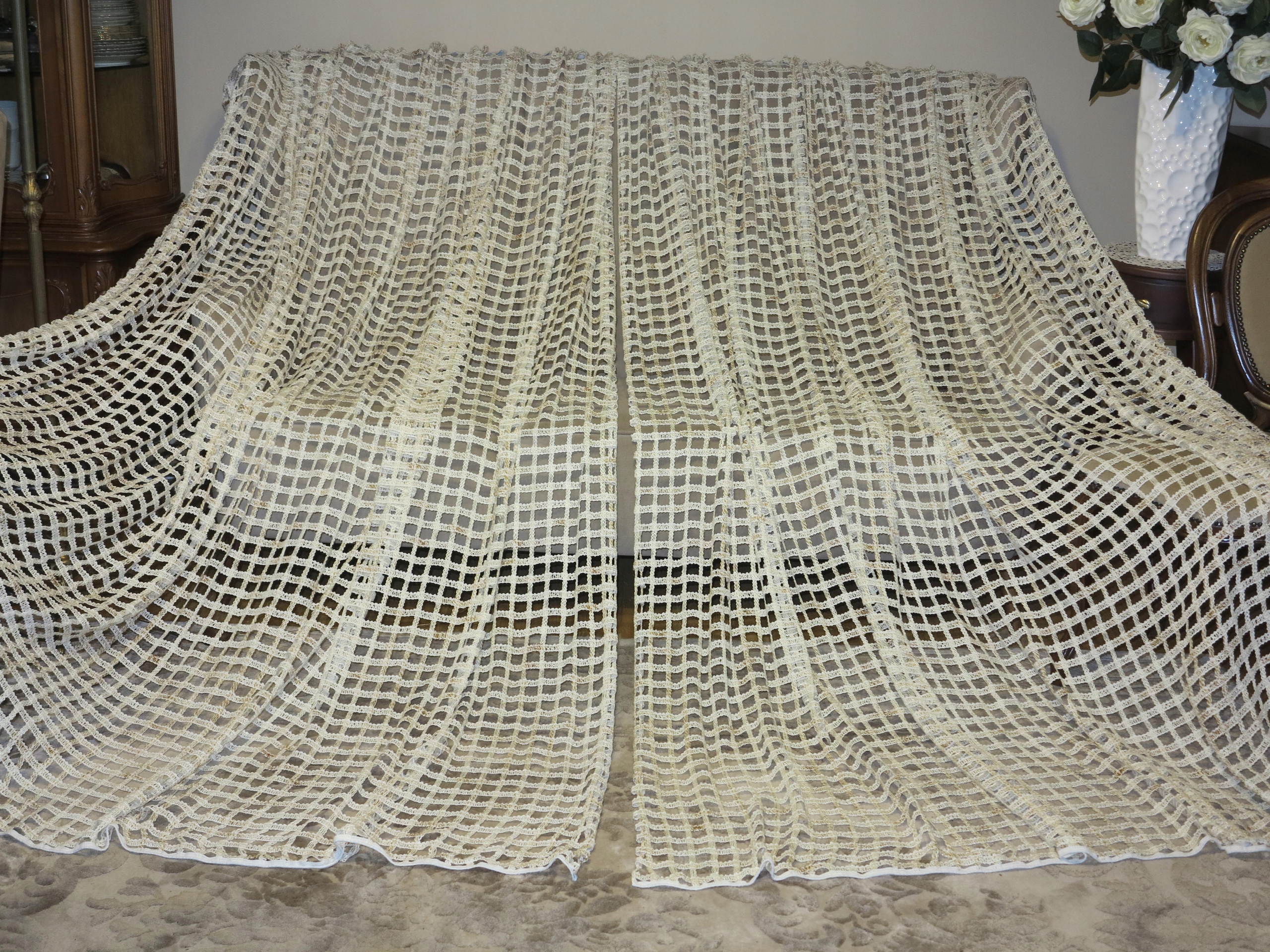 Тема аукціону-це прекрасний набір двох шторів, як і для антикварної манори. Кожна половина має розміри: ширина 228 см, висота 226 см. Використовуваний набір, але в супер хорошому стані. Я рекомендую, це виглядає красиво і дуже оригінально. Я чесно рекомендую.