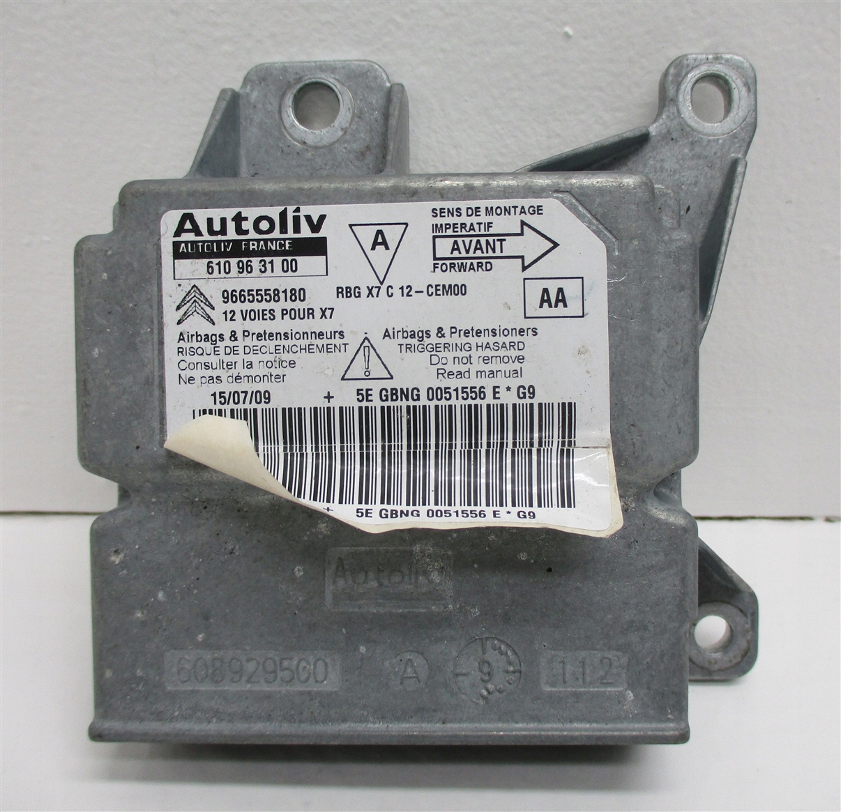 SENSOR MODUŁ AIRBAG CITROEN C5 III X7 9665558180