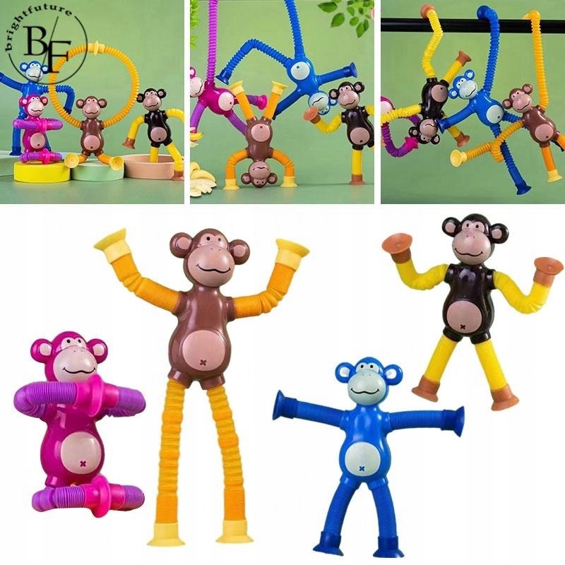 ІГРАШКИ СЕНСОРИЧНІ МАВПОЧКИ, РОЗТЯГУЮЧІ ТРУБКИ З ПРИСОСКАМИ. МАВПИ ДОСТУПНІ У 4 ВАРІАНТАХ КОЛЬОРІВ НА ВИБІР.