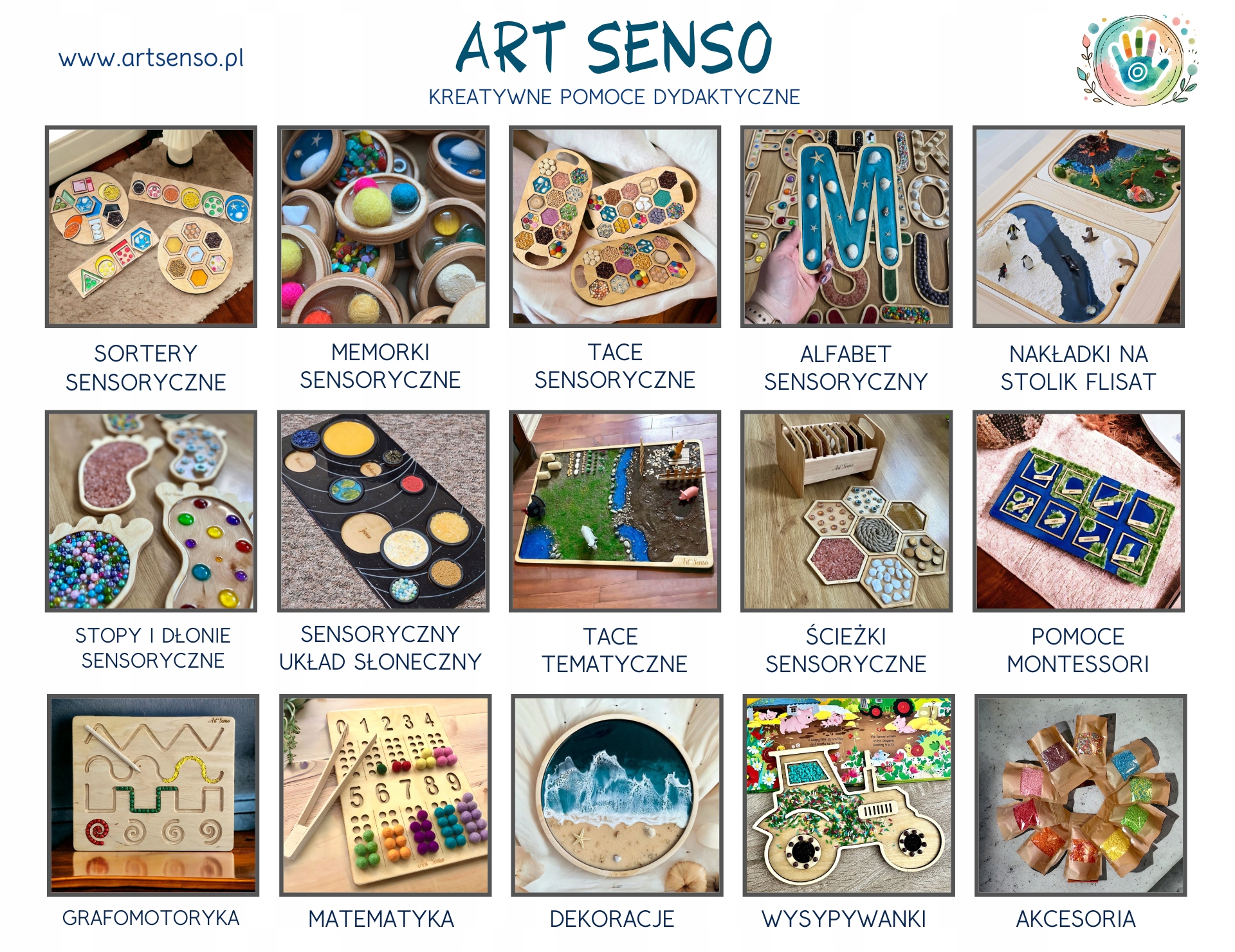 Наші навчальні посібники - це не тільки продукти для підтримки сенсорного розвитку дитини, але також діють як іграшки, стимулюючи творчі здібності, розвиваючи дрібну моторику, практикуючи графомоторику та багато, багато іншого. Вони ідеально підійдуть як дерев’яні іграшки для всіх, хто працює за методом Марії Монтессорі.