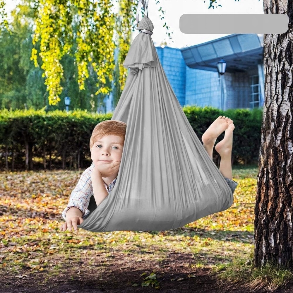дитячий гамак-хутка виготовлений із 100% нейлону високої щільності, завдяки якому він легкий і стійкий до розриву, а його навантажувальна здатність до 90 кг (200 фунтів). Супер -м'який, еластичний збоку і захищений від перекидання. Структура робить задоволення та розслаблення для дітей простішими та безпечнішими, коли їм потрібно вивантажити стрес. Терапевтичний розмах з тканиною для гойдалки в кімнатах дає дітям багато можливостей грати на гойдалці, читанні, солі та обертанні.