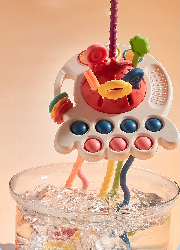 Інтерактивна багатофункціональна сенсорна іграшка Ufo 4 в 1 призначена для малюків від 18 місяців. Іграшка дозволить дитині відкривати різноманітні текстури та форми, вона оснащена багатьма функціями, які позитивно впливатимуть на моторику малюка, а кольори та форми викличуть у дитини цікавість. Обидві сторони іграшки містять нековзку структуру, що дозволяє дітям зручно її тримати. UFO вирізняється своєю естетикою виготовлення, приємними кольорами та формами, що надають багато цікавих ігрових можливостей.