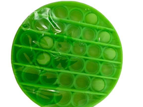 Ця іграшка багаторазова. Він полягає в натисканні на бульбашки всередині, які видають тихий звук, схожий на бульбашкову плівку. Після натискання на всі бульбашки переверніть іграшку та почніть знову.