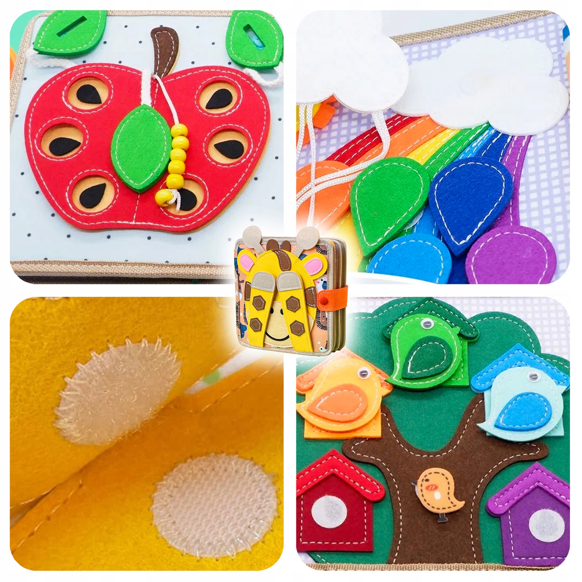 Більшість сенсорних книг - це фетри. Наша відрізняється барвистою базою матеріалу з відбитками , що надає йому унікальний вигляд і робить дітей більш готовими досягти цього.