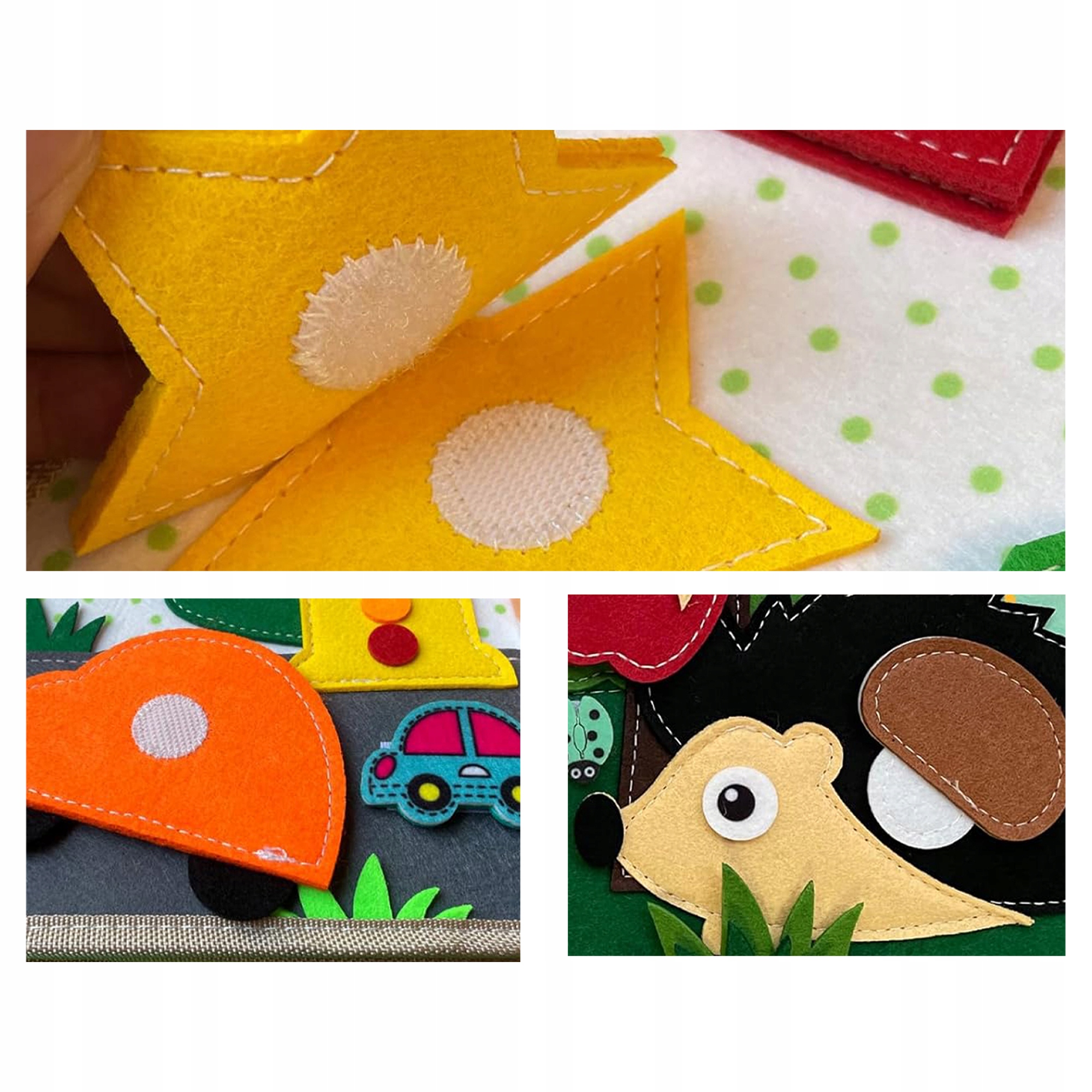 Інтерактивні елементи з фетру (ріпа, кнопки, повзунки, кишені) заохочують вас маніпулювати та відкривати.