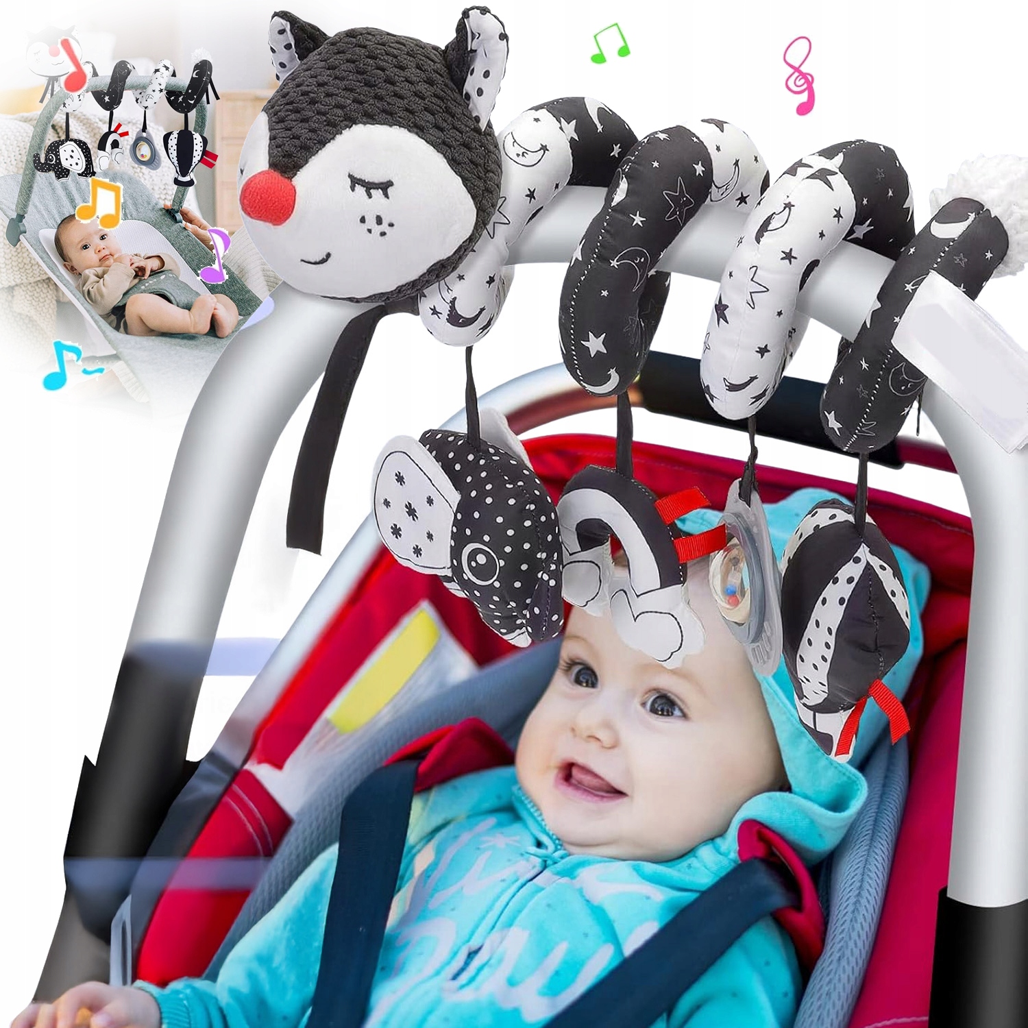 👩🍼👨🍼🍼bykaka для дитячої коляски, спіральна навчальна іграшка для дітей (з музикою), висить плюшева іграшка в контрастному чорно -білому кольорі, підходить для ліжка/автокрісла/дитячого автокрісла, подарунок для новонародженого, що підходить для дітей віком від 3, 6 та 12 місяців 👩🍼👨