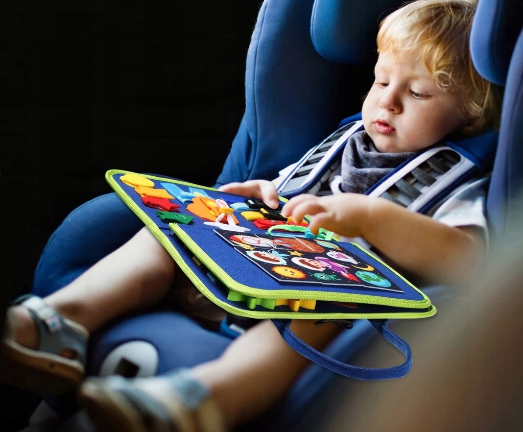 - Наші іграшки для малюків виготовлені з м’якої тканини, що не містить токсинів, і повсті, без твердих країв, що робить їх безпечними для малюків. Дошка для іграшок має ручку, що робить її зручною та гнучкою, і підходить для більшості сумок для підгузників і шкільних ранців. Це ідеальна іграшка Монтессорі для маленьких дітей, якою вони будуть зайняті під час подорожі на машині, літаку, у подорожах або в хвилини тиші.