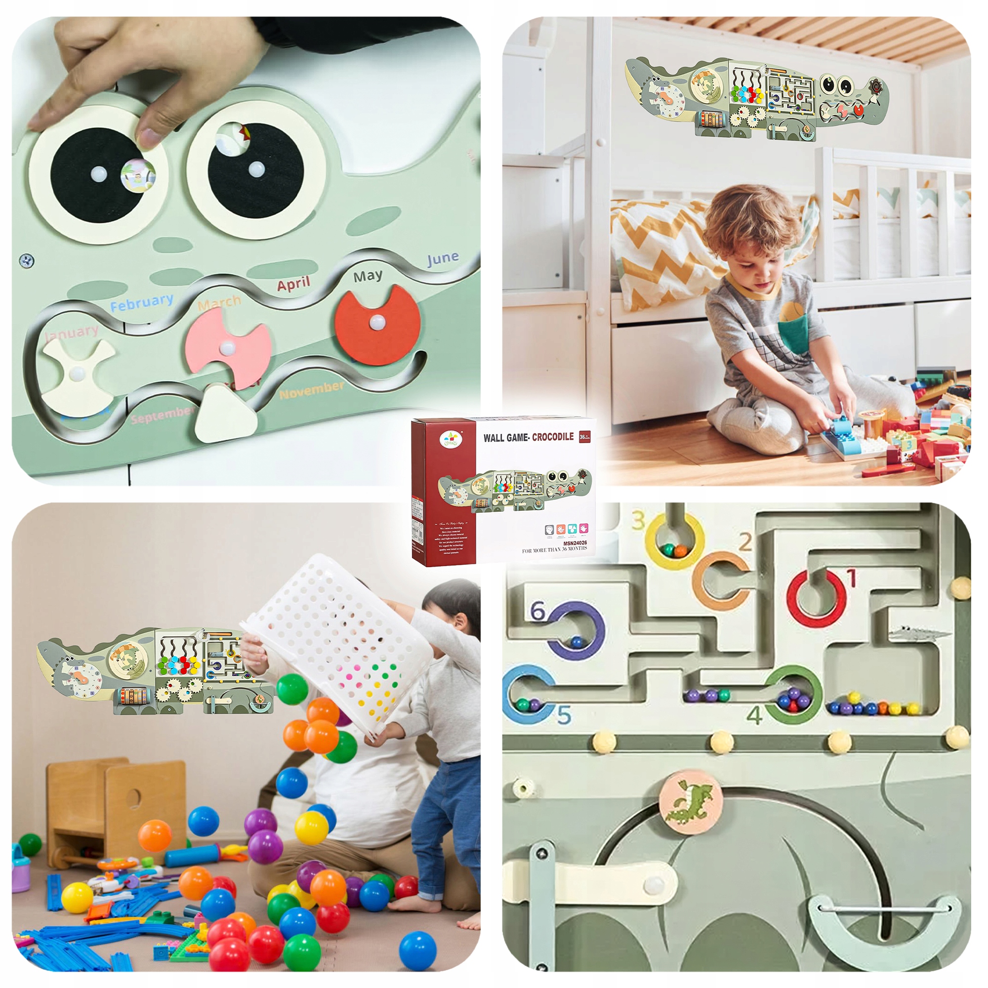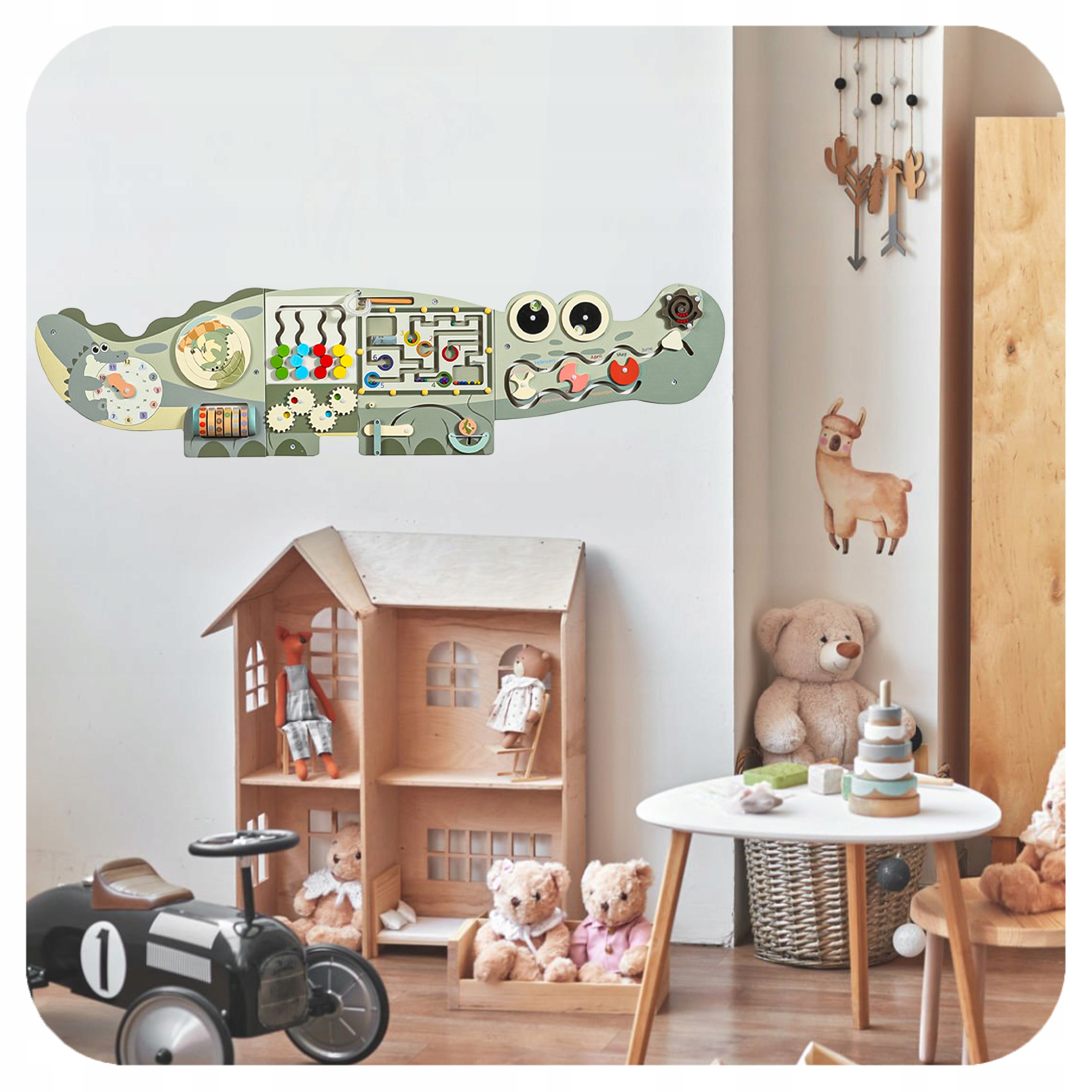 Розвиток через гру! Велика маніпуляційна дошка у формі крокодила є ідеальною пропозицією для дітей, які люблять відкривати та експериментувати. Різні елементи вчать терпінню, тренують спритність і стимулюють уяву.