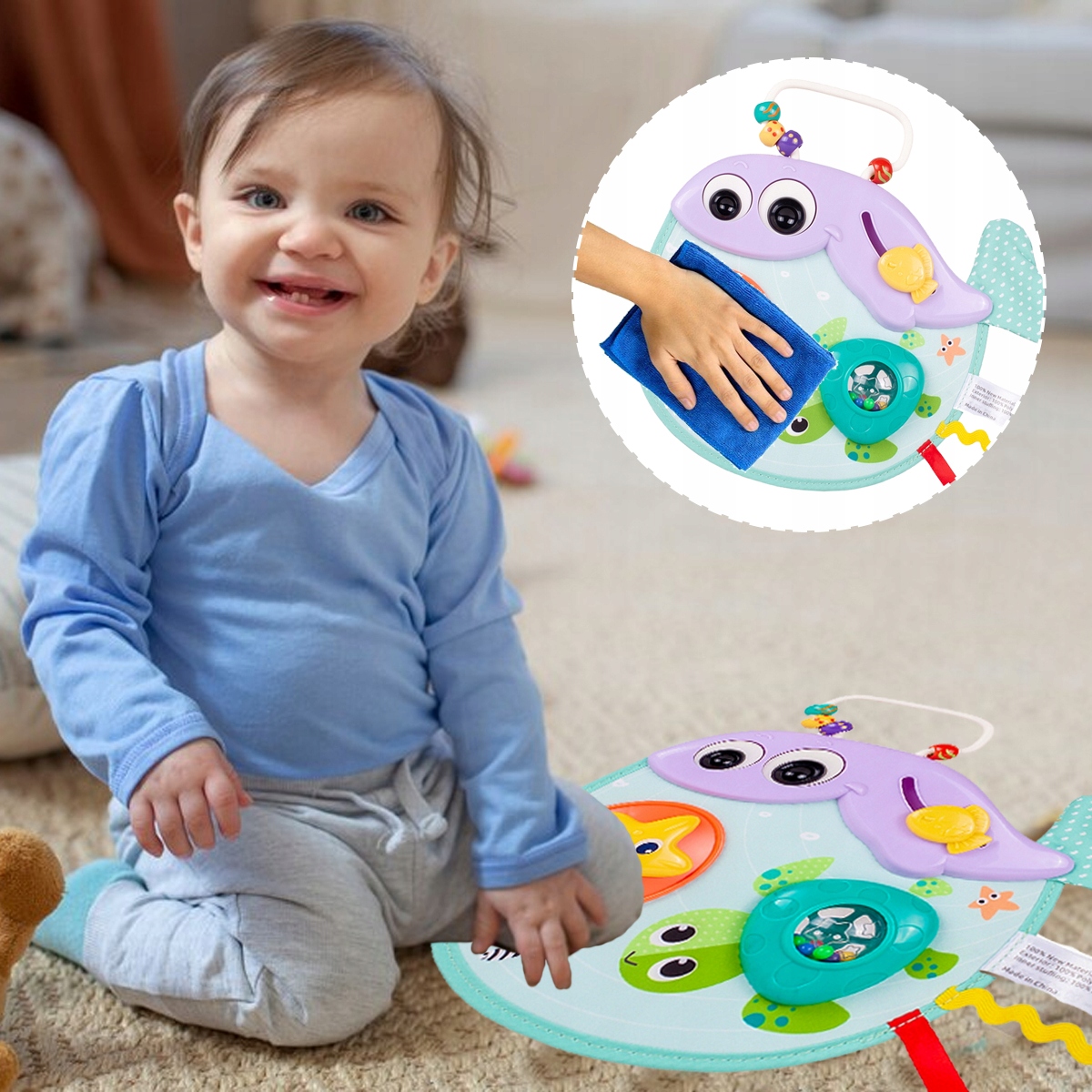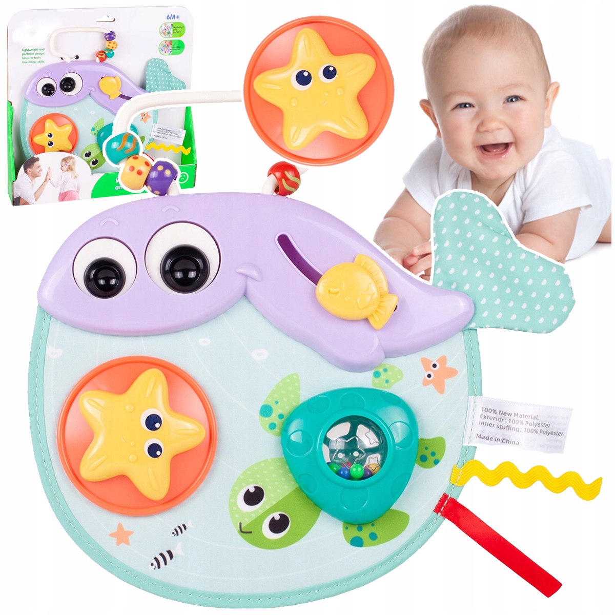 ✅ Завдяки різним формам, кольорам та звукам "Веселий кит" стимулює почуття дитини, підтримуючи його сенсорний розвиток. Малюк може захопити, утримувати та тремтіти з храпочкою, що допомагає розробити його ручні здібності та фізичну координацію.