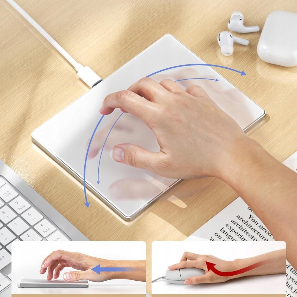 Відкрийте для себе точність і комфорт роботи з унікальною сенсорною панеллю Seenda, яка поєднує в собі елегантний дизайн зі скляною поверхнею та міцною алюмінієвою основою. Ідеально підходить для щоденного використання на Windows і Mac.