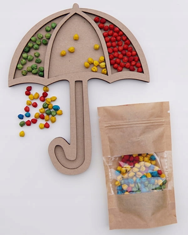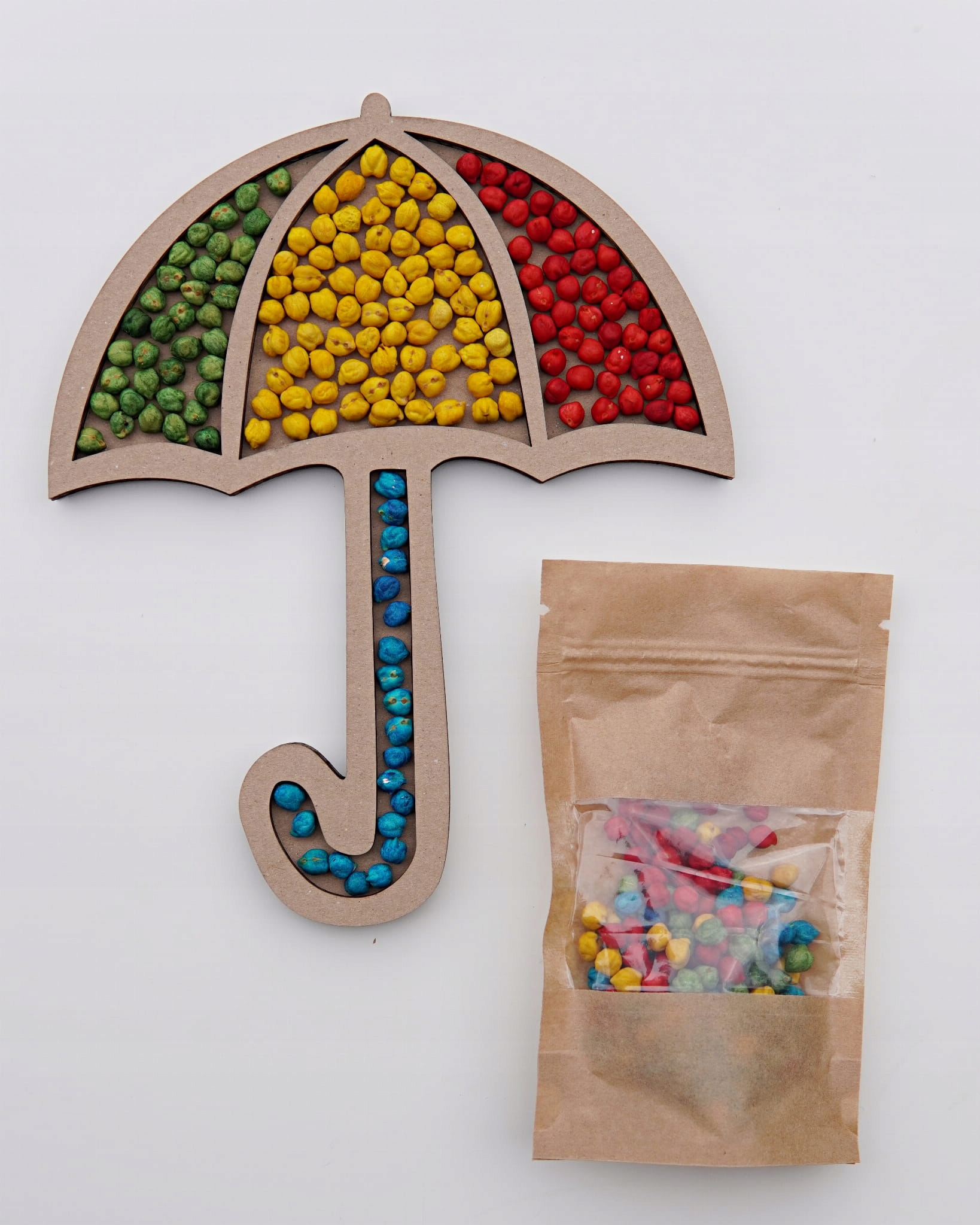 - Натуральні насіння нута, забарвлене харчовими барвниками: синій, зелений, жовтий та червоний, 100 г.
