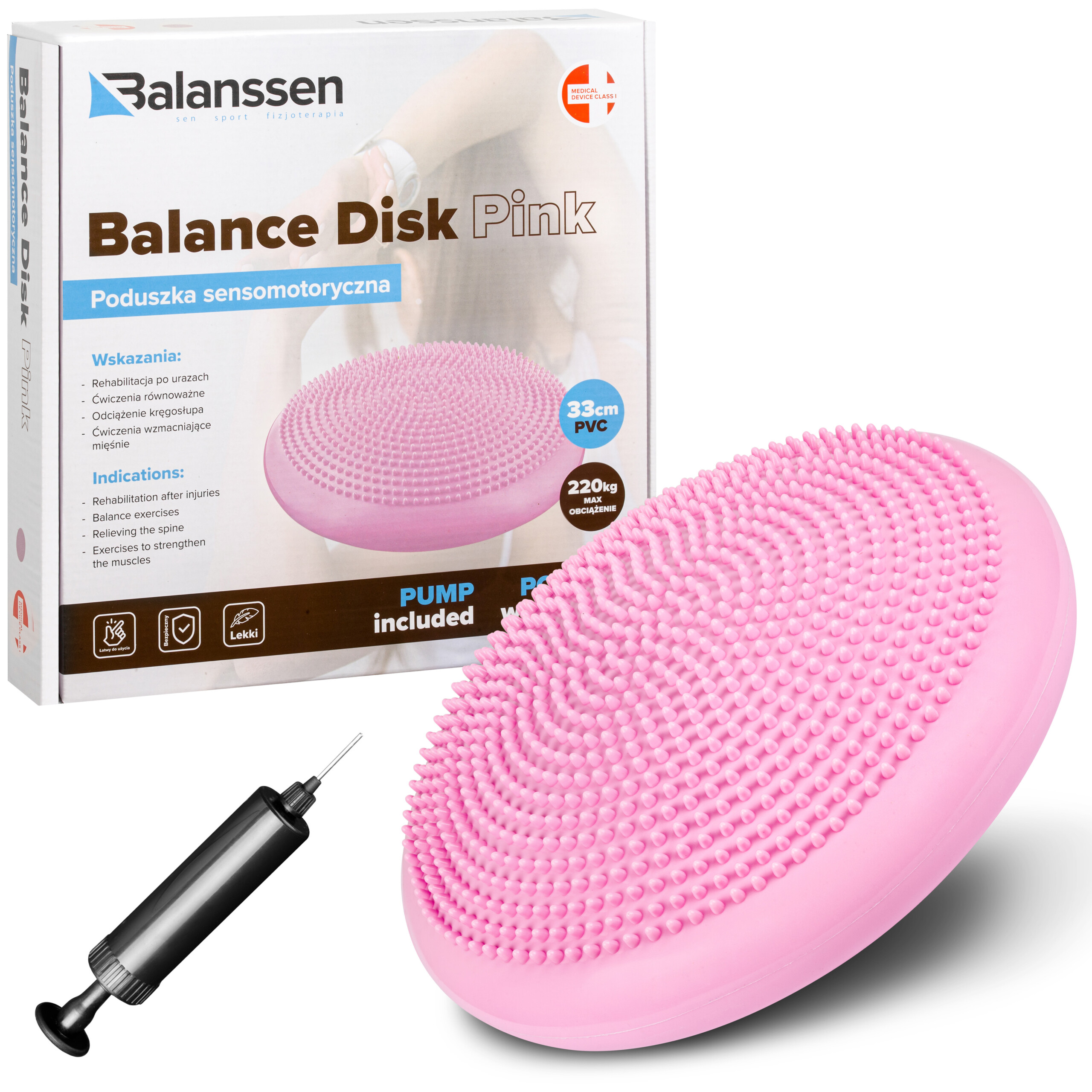 Сенсорна подушка Balance Disc Balanssen призначена для вправ на рівновагу. Створюючи нестабільну основу, він покращує баланс тіла та координацію рухів. Завдяки цьому він зміцнює глибокі м'язи, які відповідають за стабілізацію фігури. Диск часто використовують для корекційної гімнастики, а також під час посттравматичної реабілітації.
