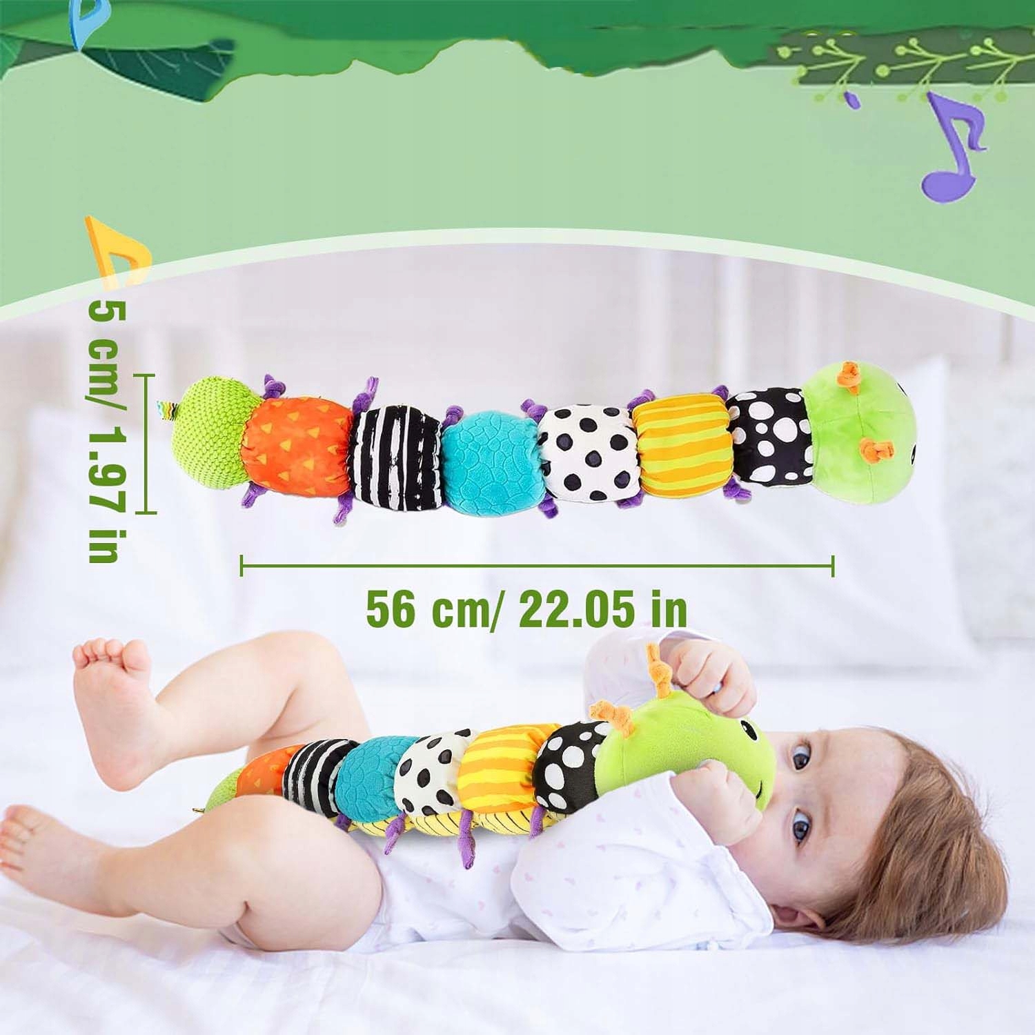 гусеничні музичні іграшки для дитячих музики 0-6 місяців. Плюшеві іграшки виготовлені з екологічно чистих нетоксичних матеріалів. М’який плюшевий корпус ідеально підходить для обіймів, а гусеницю можна помістити в ліжечко, колиску або коляску. Структура правителя на спині може засвідчити ріст дитини у часі.