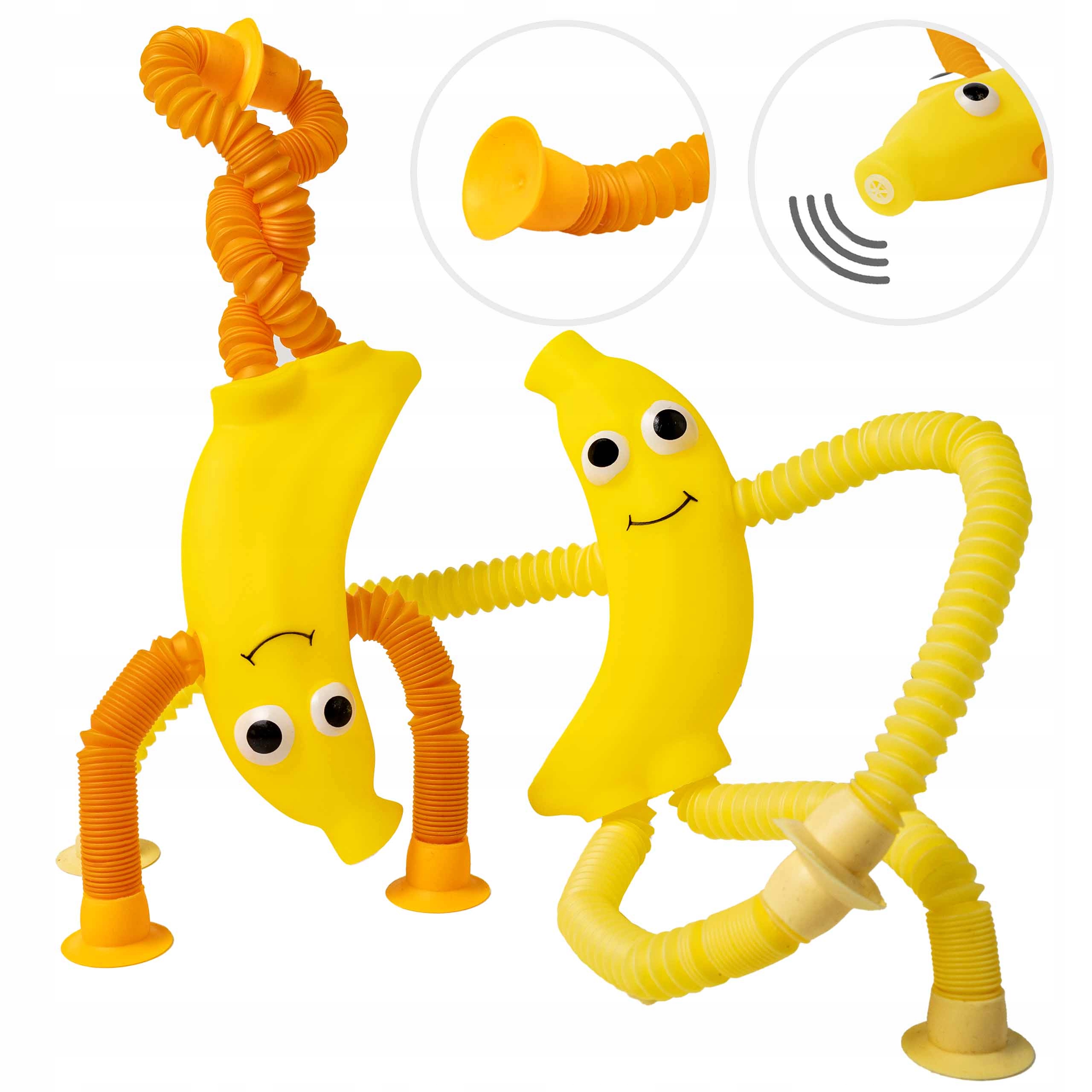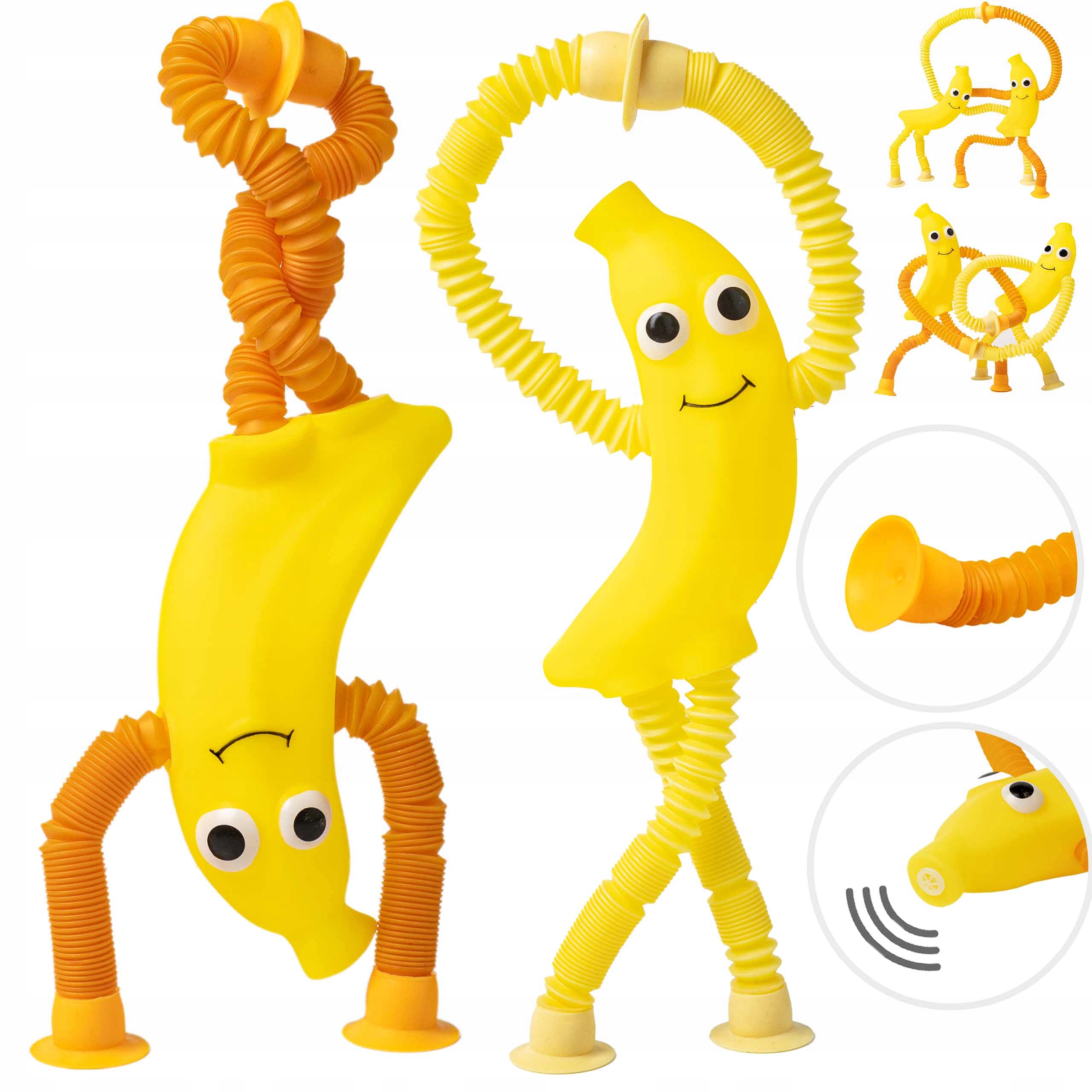 Це унікальні, сенсорніантистресові іграшки, які захоплюють і діти, і дорослі. Ці інтерактивні іграшки у формі гнучких трубок у вигляді банана можна розтягувати, згинати, скручувати та навіть прикріплювати до... різних поверхонь за допомогою присосок. Додатковий звуковий ефект - скрип при розтягуванні - робить гру ще більш захоплюючою та більш задоволеною. Це ідеальна пропозиція для людей, які шукають сенсорну розвагу, релаксацію та інструмент, який підтримуємоторний розвиток і творчість.