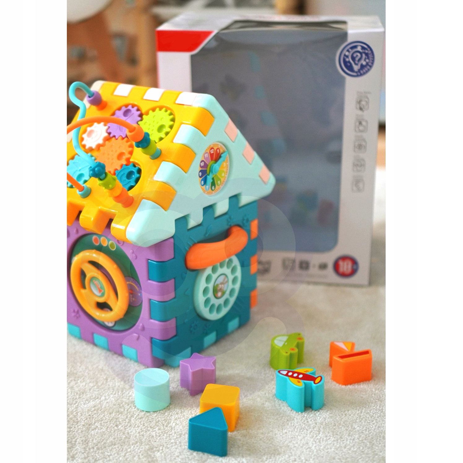 Activity House 9in1 від торгової марки WOOPIE - багатофункціональна іграшка, призначена для залучення дітей до різноманітних занять. освітні та розважальні заходи.Це прикрашено набором цікавих елементів. З одного боку є колесо, що обертається, з різнокольоровими намистинамиякі створюють заворожливий візуальний ефект. Дзеркало відображає образ дитини, підтримуючи самоідентифікацію. Сортувальник фігур містить блоки, які вставляються у відповідні отвори, навички вирішення проблем. Ручка на даху обертається, створюючи звуки клацання, які розвивають слух і покращують міцність захоплення. Двері відкриваються і закриваються, створюючи додатковий інтерактивний елемент. Кожна сторінка цього чарівно оформленого дому пропонує щось нове для відкриття, гарантуючи, що ваша дитина не лише гратиметься, але й навчатиметься на кожному кроці.