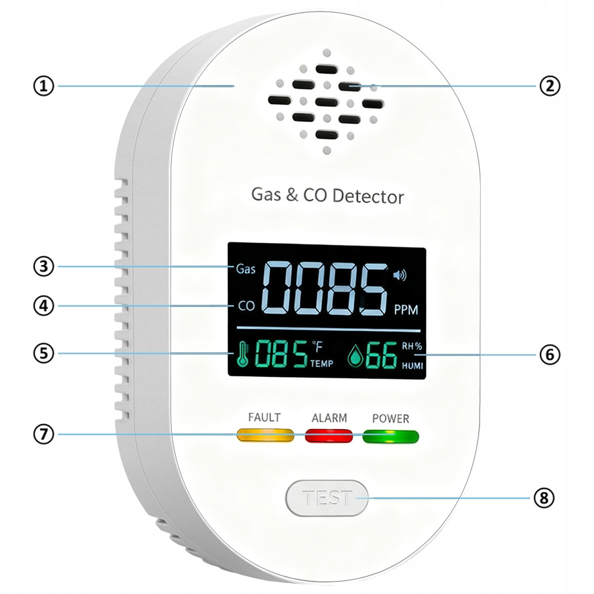 ✅ Універсальна модель детектора чадного газу та газу з цифровим РК-дисплеєм. Ця система попереджає мешканців про виявлення чадного газу (СО) та інших газів.