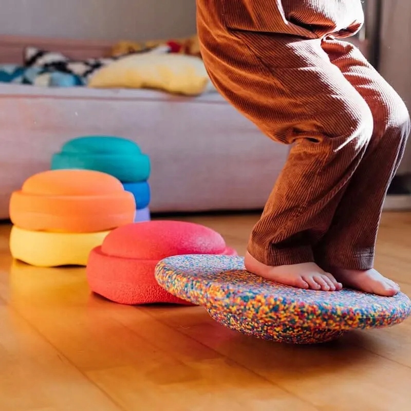 Альбом Rainbow заохочує творчу забаву та залучає все тіло до фізичних навантажень. Завдяки різноманітним кольорам вони пропонують необмежену забаву для дітей різного віку та дорослих. Вони прекрасно працюють вдома та на свіжому повітрі, що супроводжують дітей протягом усього розвитку. Він може бути використаний для створення перешкод для перешкод, вправ, що розвивають різні групи м’язів у дітей, а також балансуючий стілець. Барвисті «камінчики» виготовлені з надзвичайно міцного матеріалу, що робить їх придатними для гри як вдома, в парку, в басейні та на пляжі - вони ідеально підходять для використання дітьми та дорослими в різних умовах. Він вводить більше руху, розваг та уяви в житті дітей та дорослих. Кожен елемент можна поєднувати з іншими. Продукт нейтральний для клімату. Він вироблявся з ресурсів економії EPP (пінопластового поліпропілену) 100% переробленої.