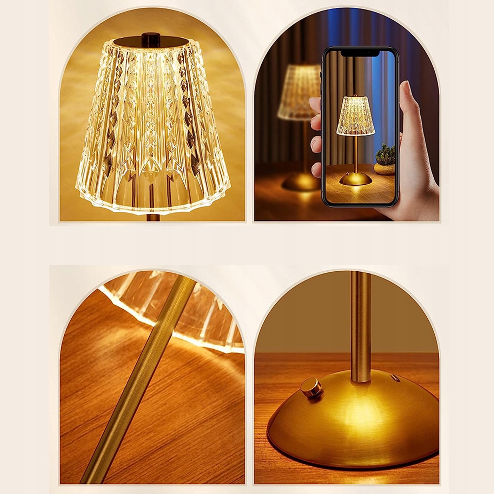 💡 3-кольорова настільна світлодіодна лампа з плавним затемненням, бездротовий акумуляторний нічник, кристальне золото 💡
