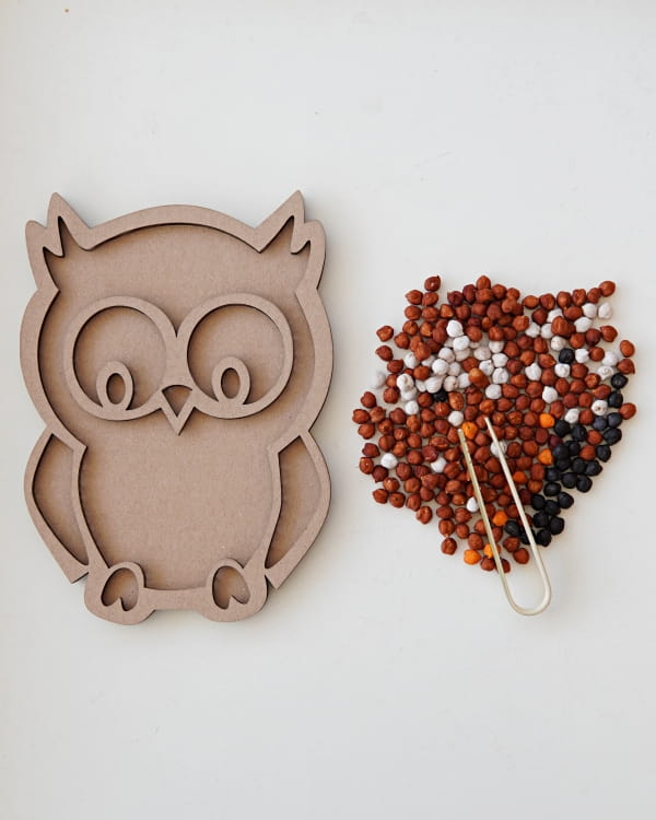 Терапевтична допомога повністю екологічна, виготовлена з картону та природних зерен.